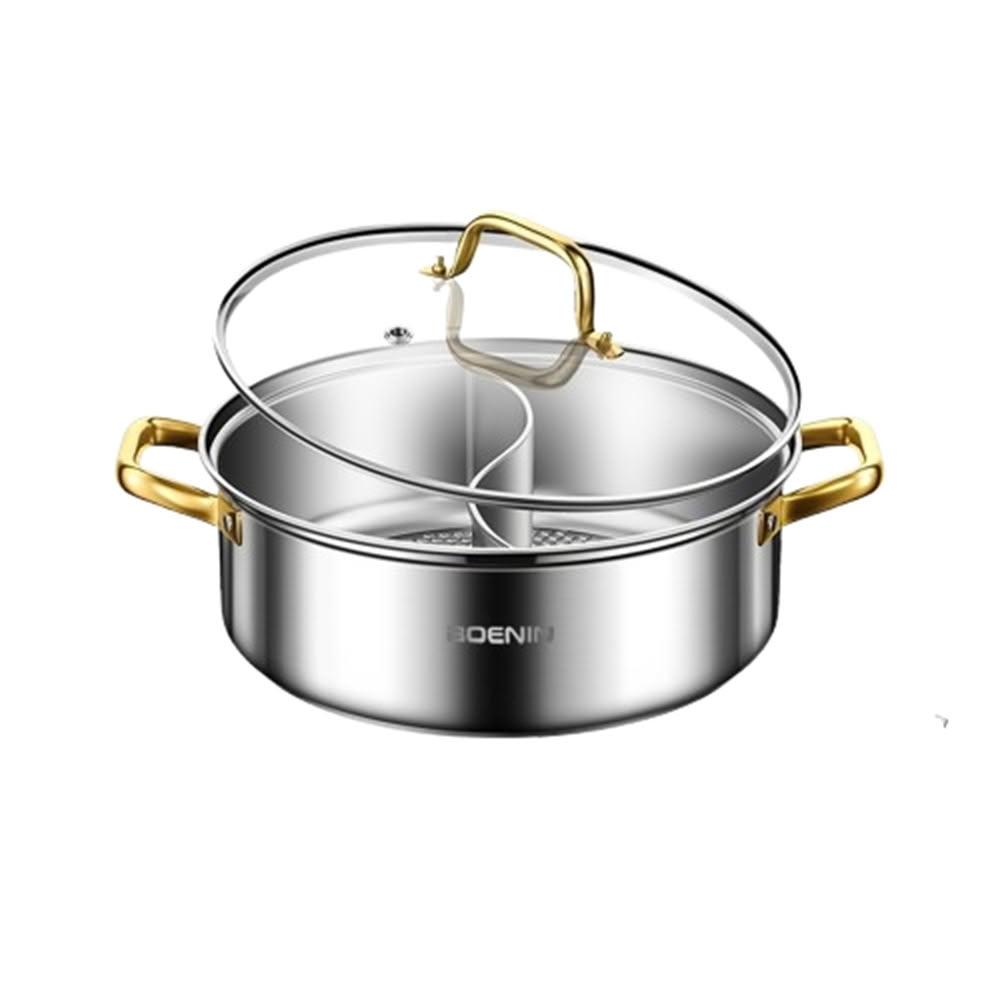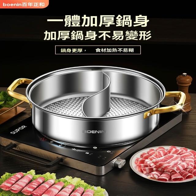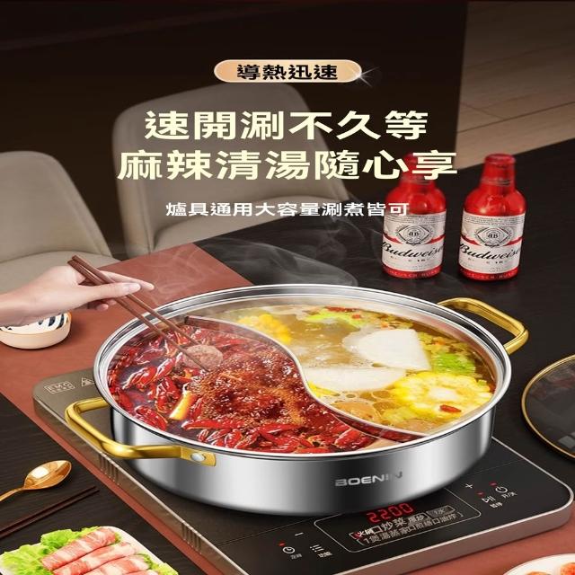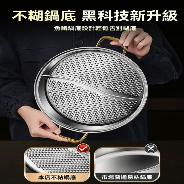 升級款魚鱗紋🔥贈湯勺漏勺 304不鏽鋼火鍋 鴛鴦鍋 火鍋盆 鴛鴦火鍋 雙享鍋 麻辣鍋 鍋具 鍋子 IH爐電磁爐通用