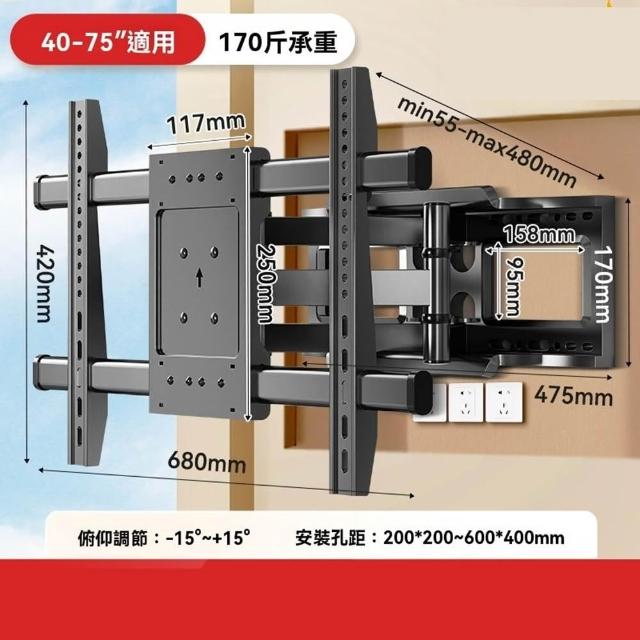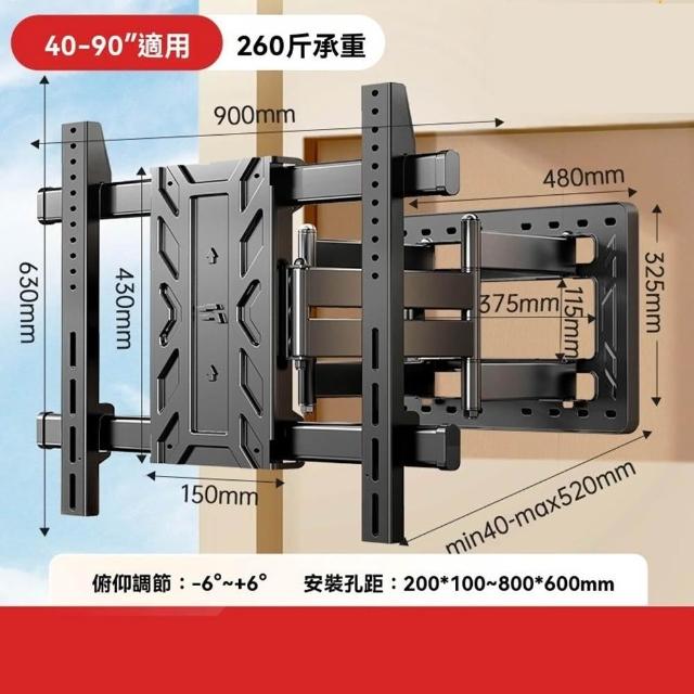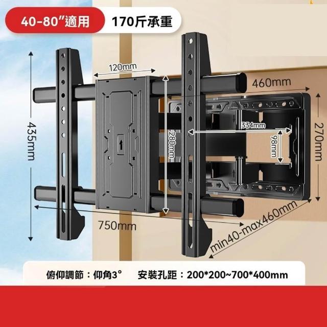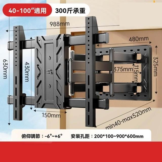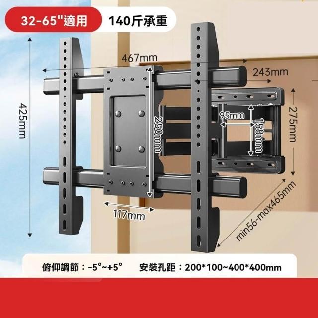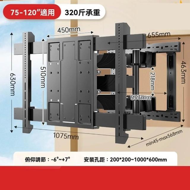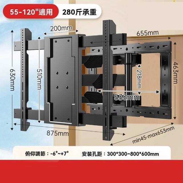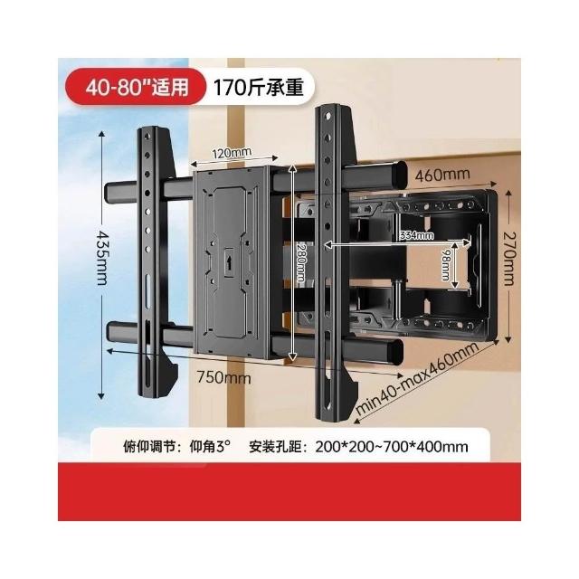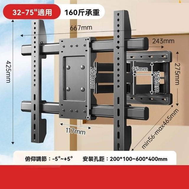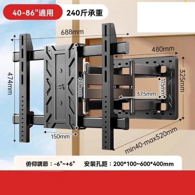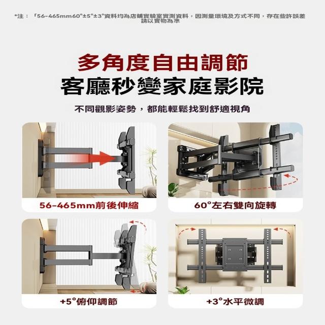 32-120吋活動拉伸式電視壁掛架 液晶電視壁掛架 電腦螢幕架 螢幕掛架 壁掛架(升級六臂拉伸/俯仰角調節/60°旋轉)