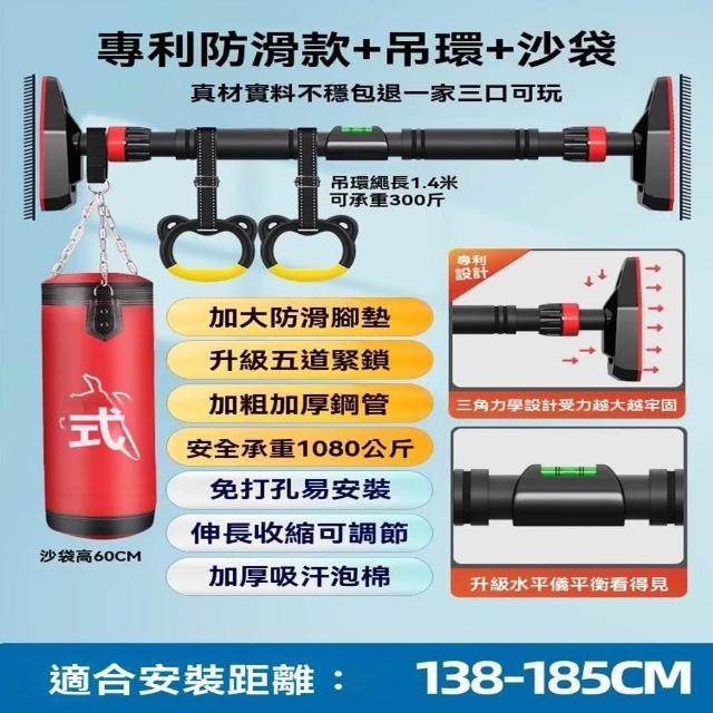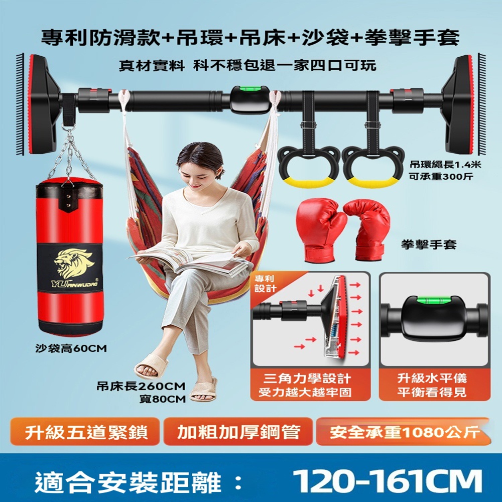 免打孔室內單槓 室內單杠 單槓 門框單槓 門上單槓 吊單槓 引體向上(承重1080斤/加大加厚腳墊/五道緊鎖/卯榫鎖扣)