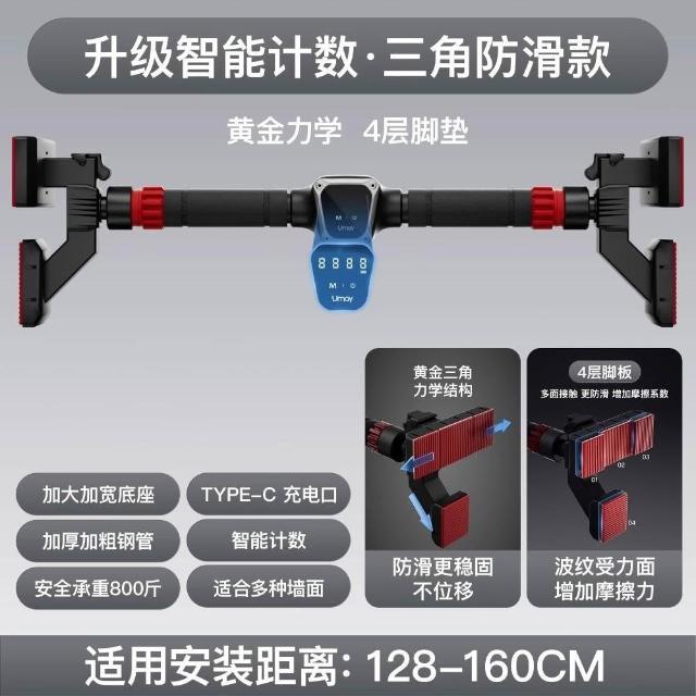 新升級智能計數四腳板單槓 免打孔室內單槓 引體向上器材 家用單槓 門上單桿 室內單槓(卯榫鎖扣/加厚吸汗/4倍加強防滑)