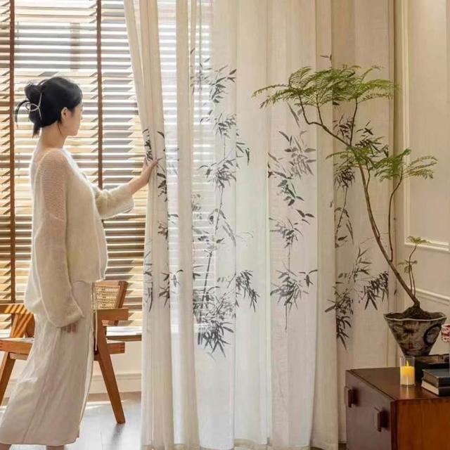 日式燕子紗窗簾 加厚透光不透人 落地窗紗 半遮光窗紗紗簾 陽臺民宿風棉麻亞麻紗遮光布(透氣亞麻感/耐磨防刮/自帶垂感)