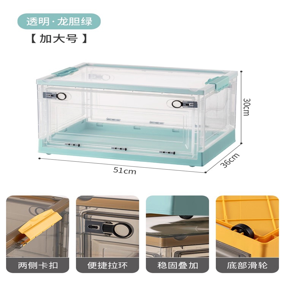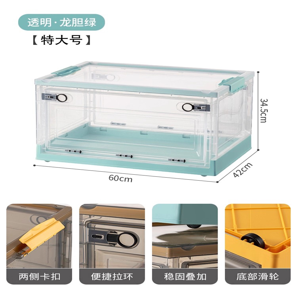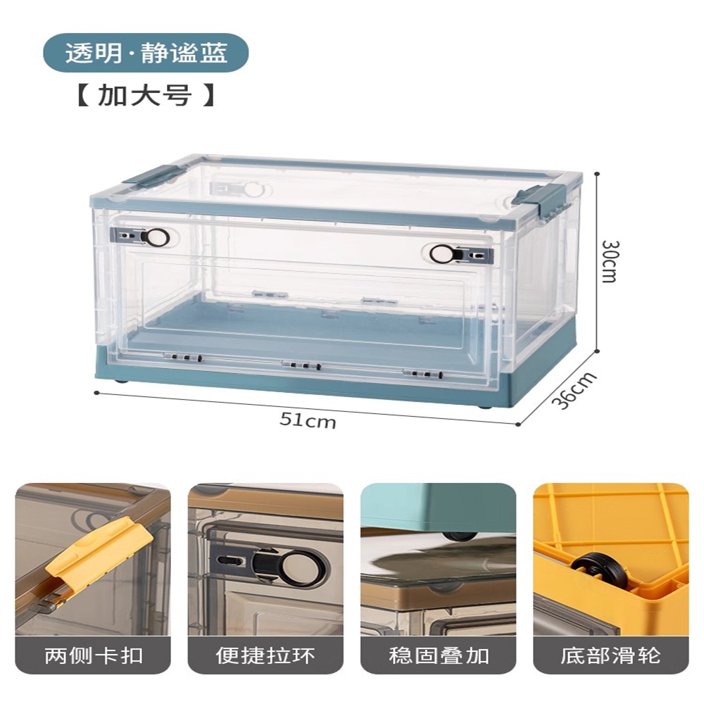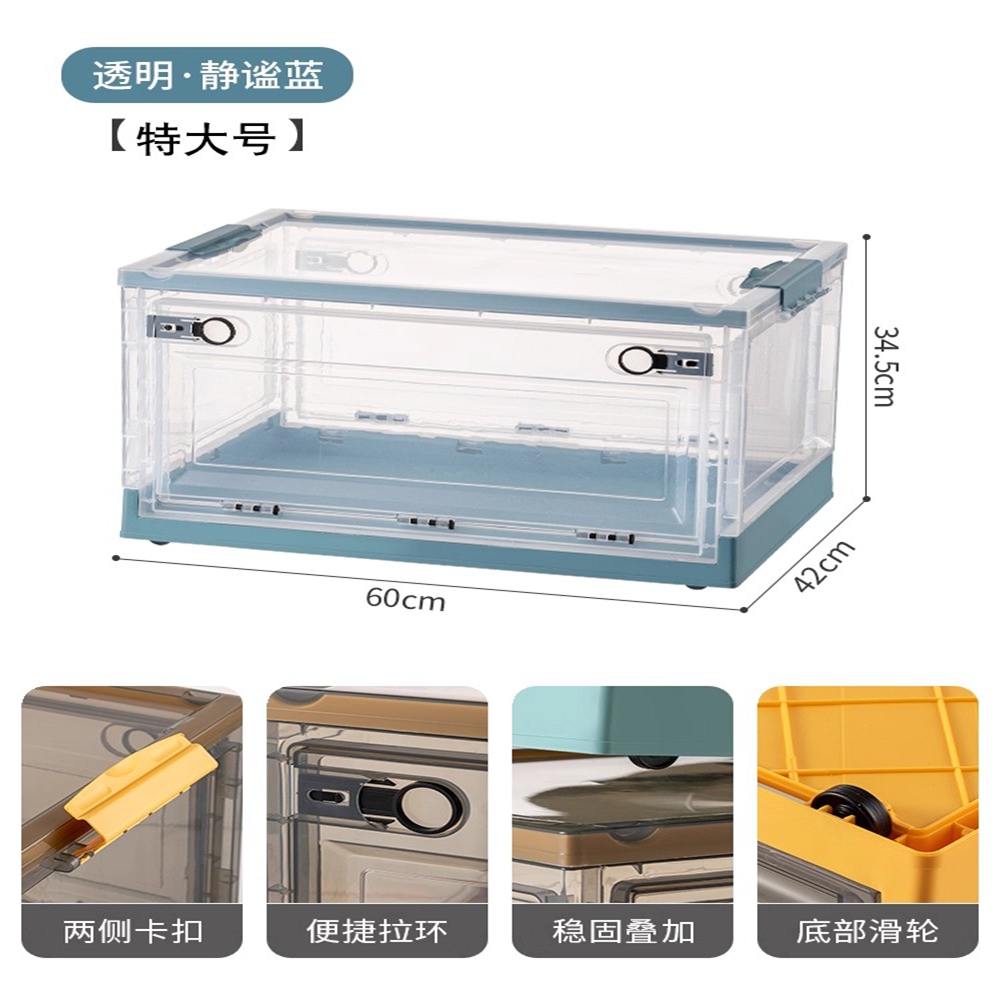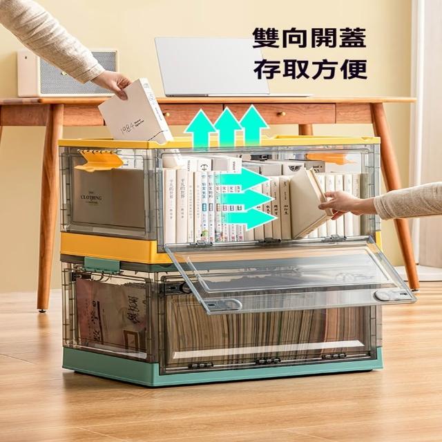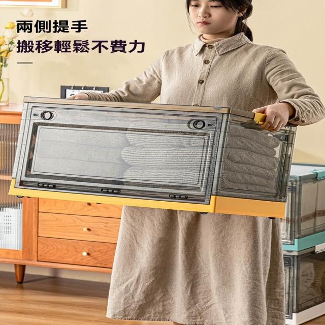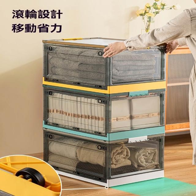摺疊收納箱 折疊收納箱 滾輪收納箱 掀蓋收納箱 塑膠收納箱 透明收納箱(五側開門設計/雙向開蓋/透明可視/附滑輪)