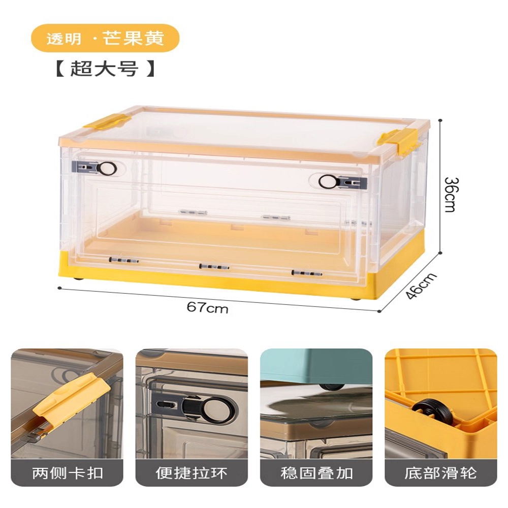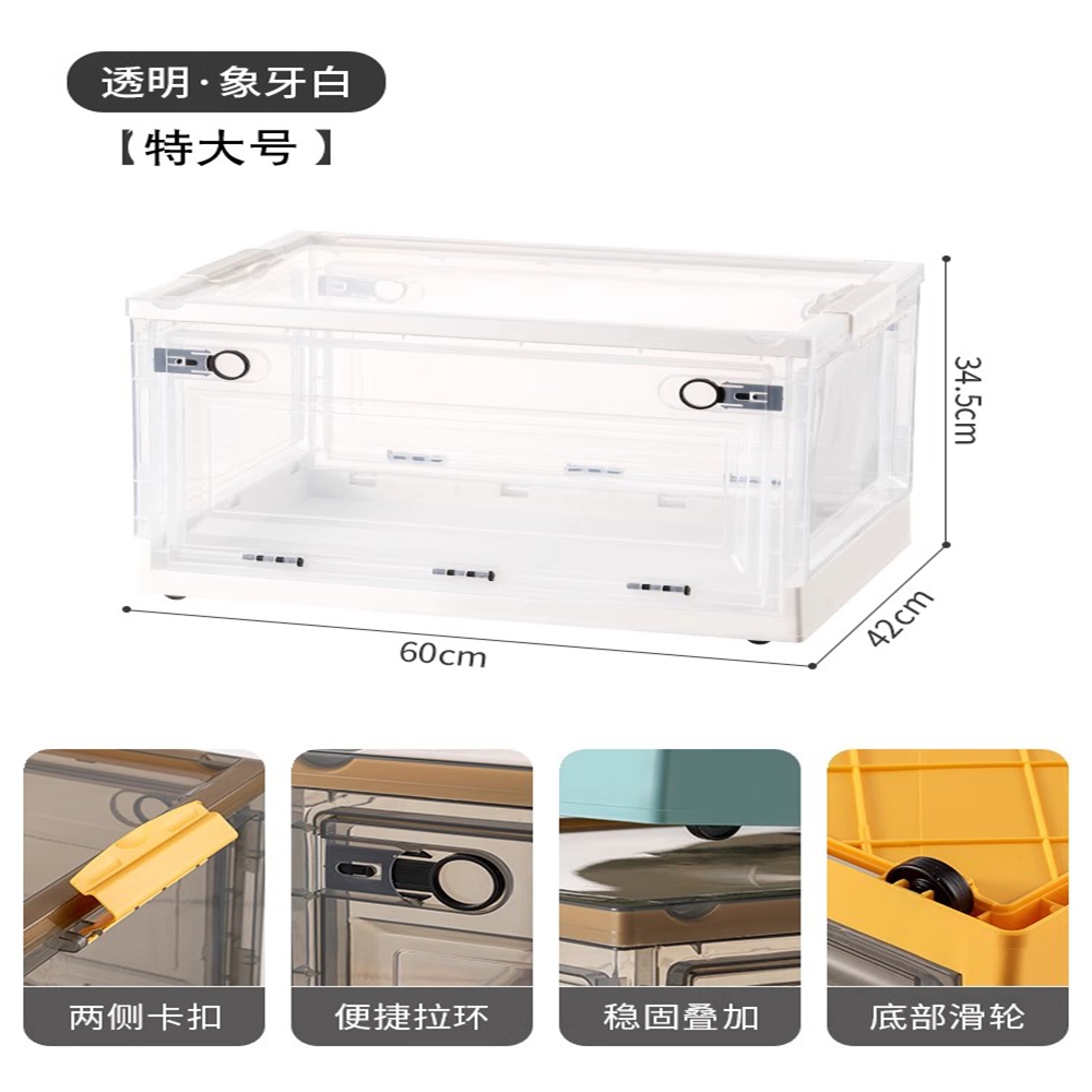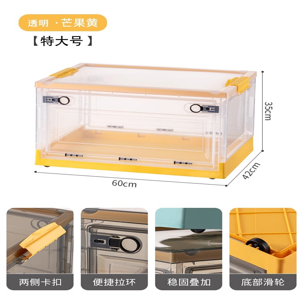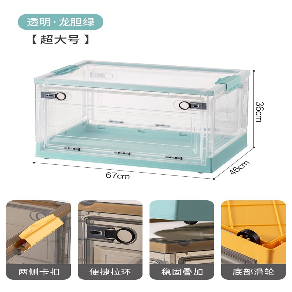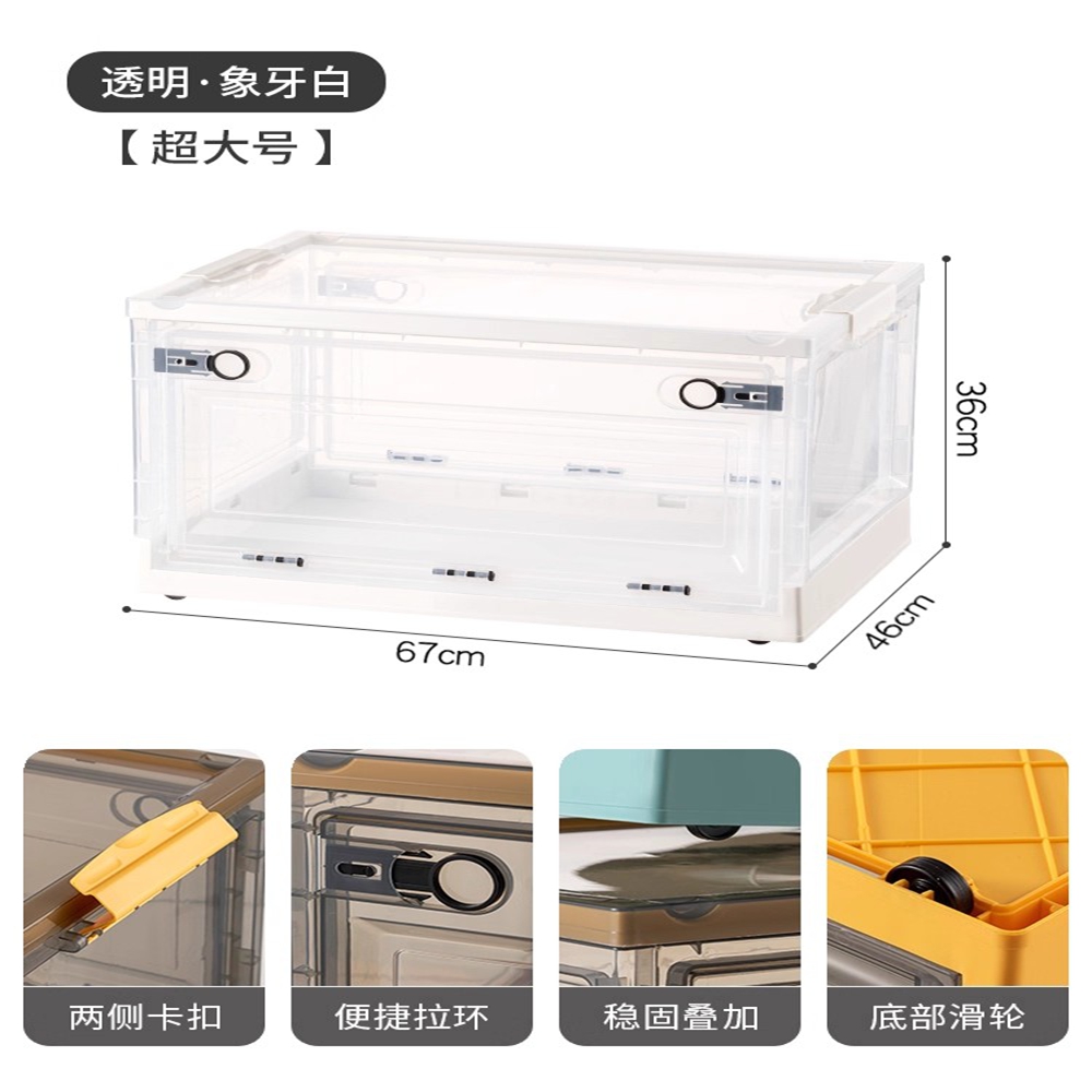 摺疊收納箱 折疊收納箱 滾輪收納箱 掀蓋收納箱 塑膠收納箱 透明收納箱(五側開門設計/雙向開蓋/透明可視/附滑輪)