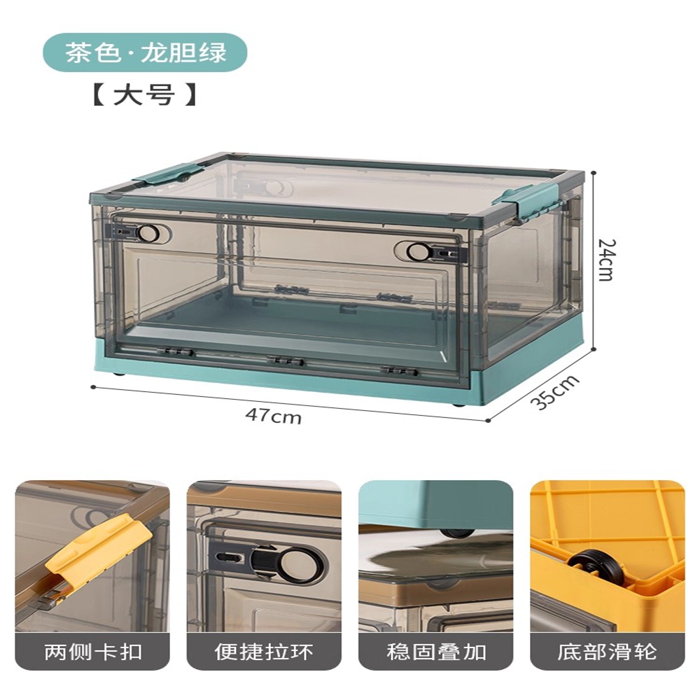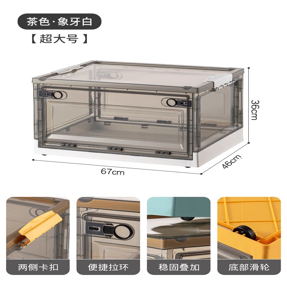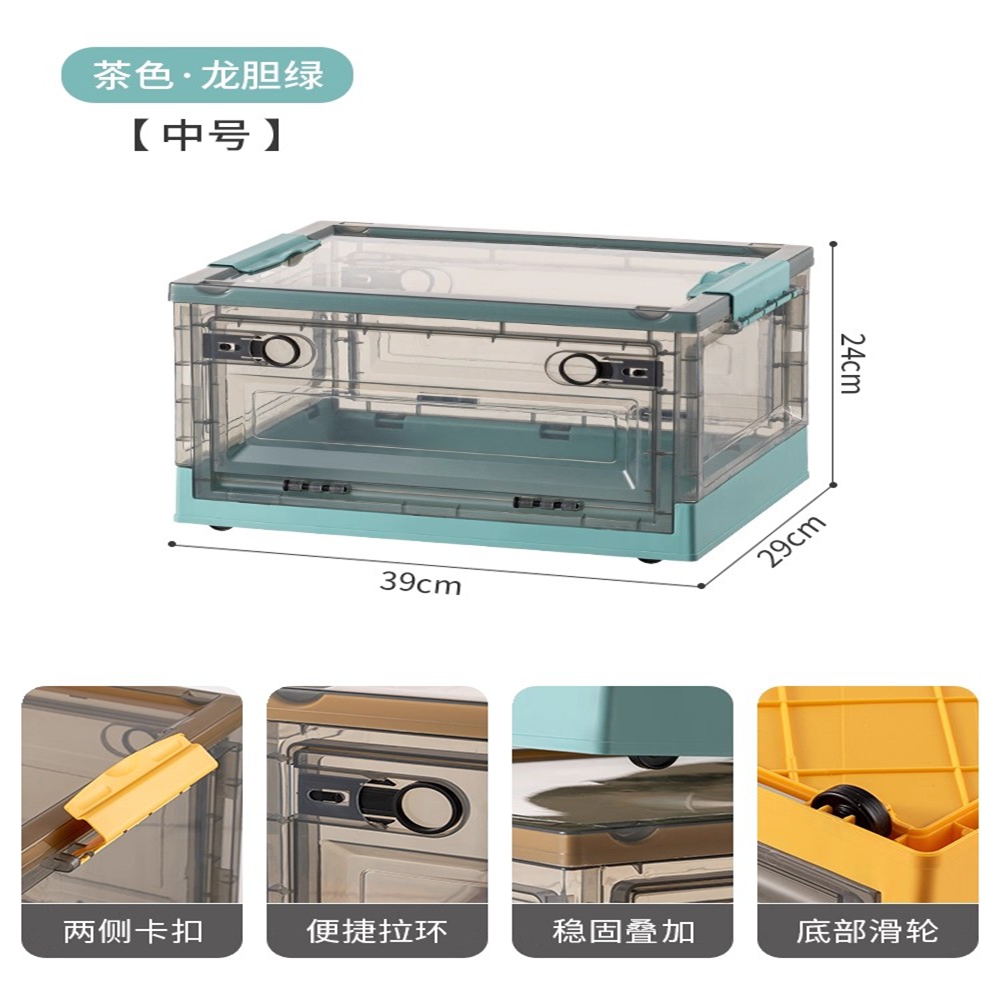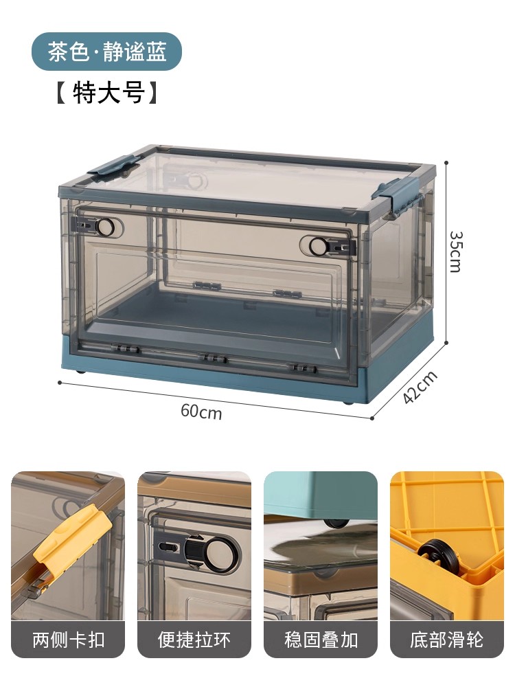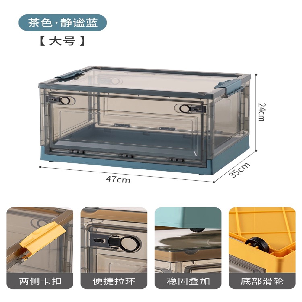 摺疊收納箱 折疊收納箱 滾輪收納箱 掀蓋收納箱 塑膠收納箱 透明收納箱(五側開門設計/雙向開蓋/透明可視/附滑輪)