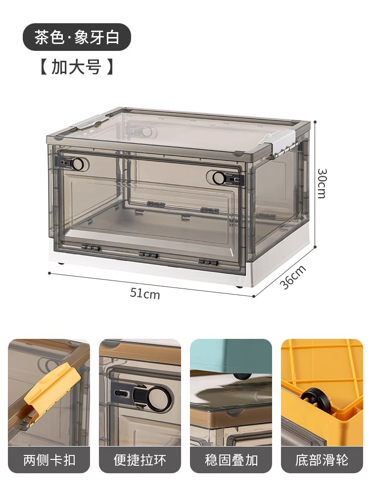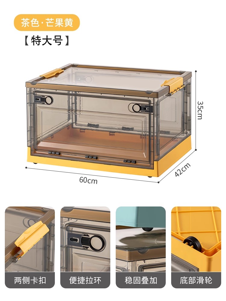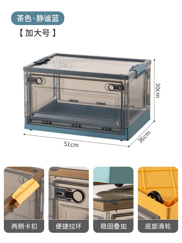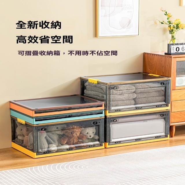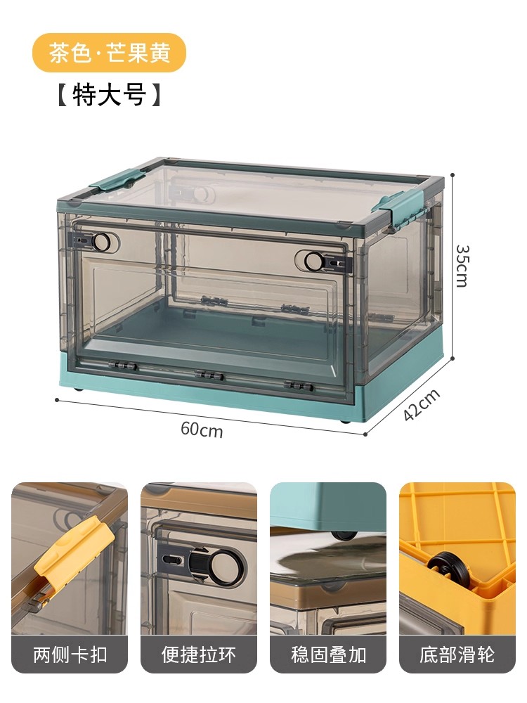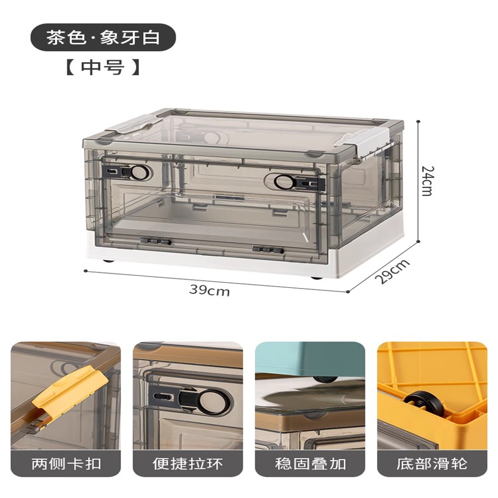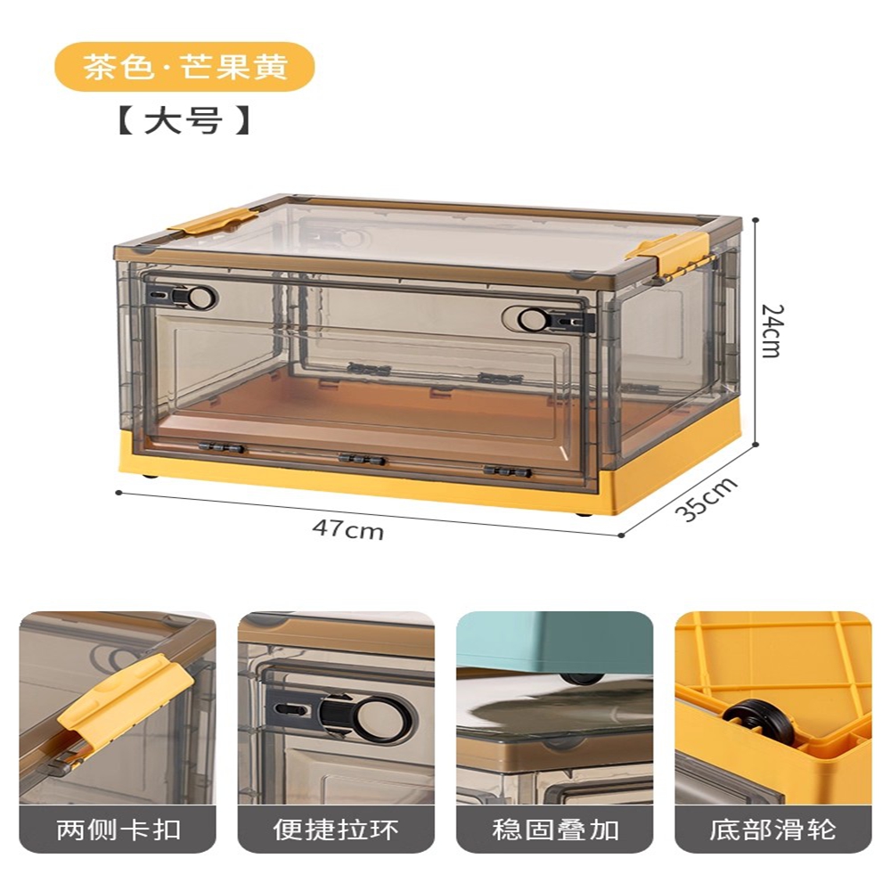 摺疊收納箱 折疊收納箱 滾輪收納箱 掀蓋收納箱 塑膠收納箱 透明收納箱(五側開門設計/雙向開蓋/透明可視/附滑輪)