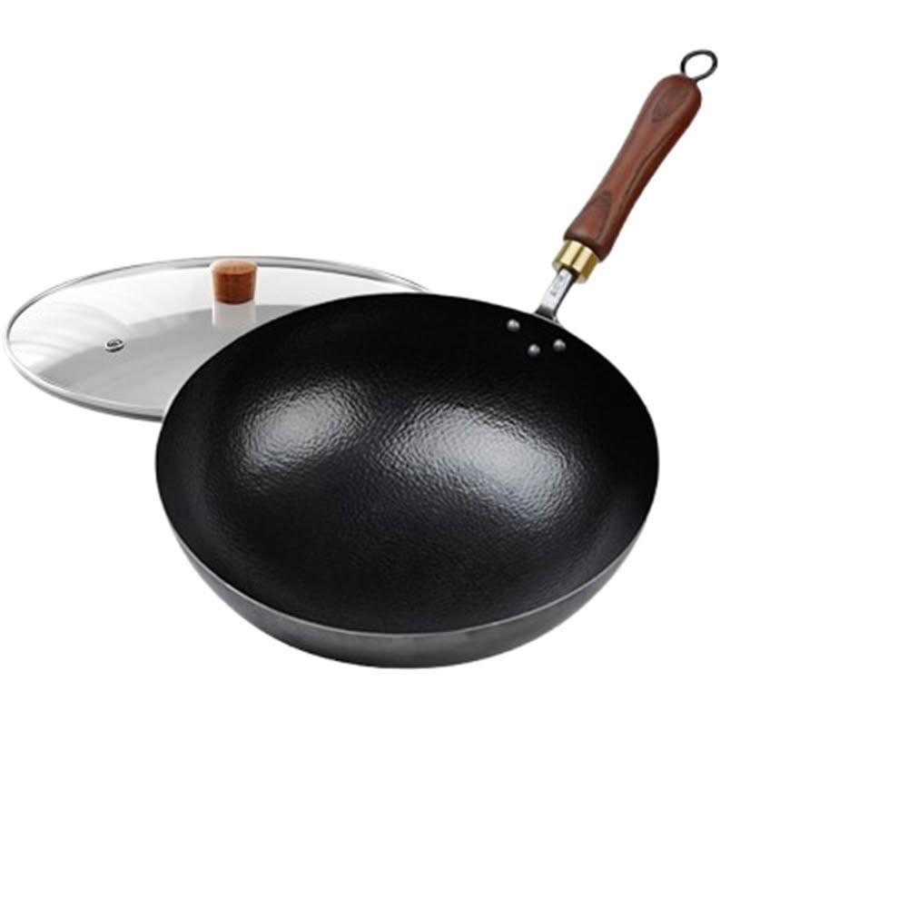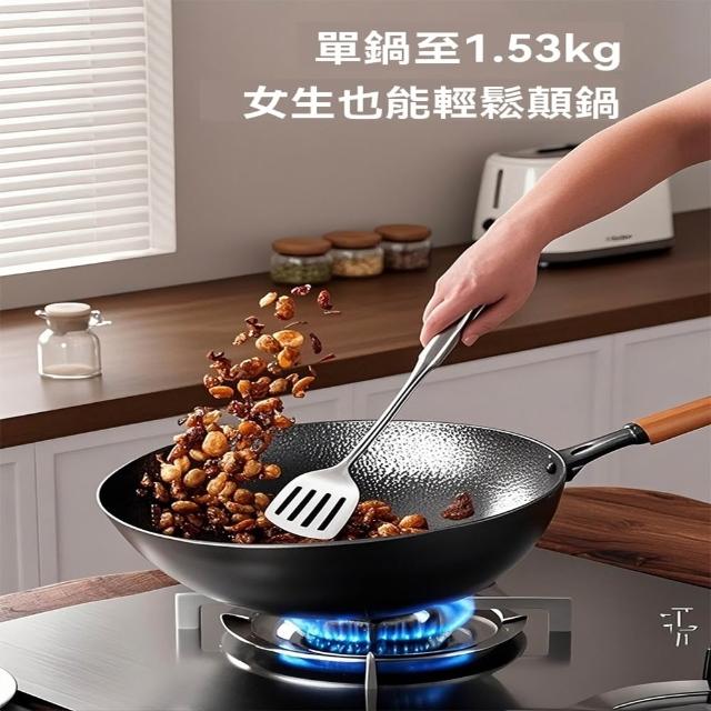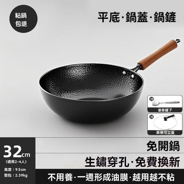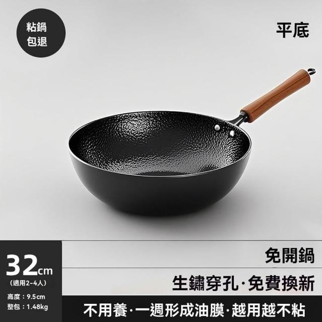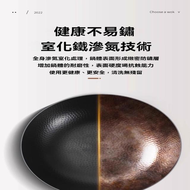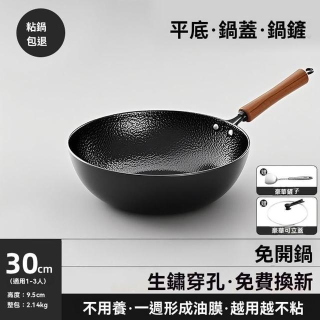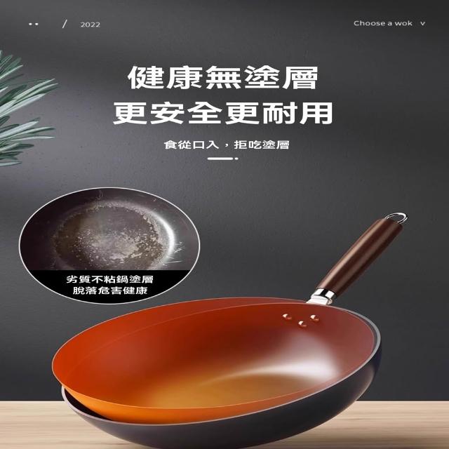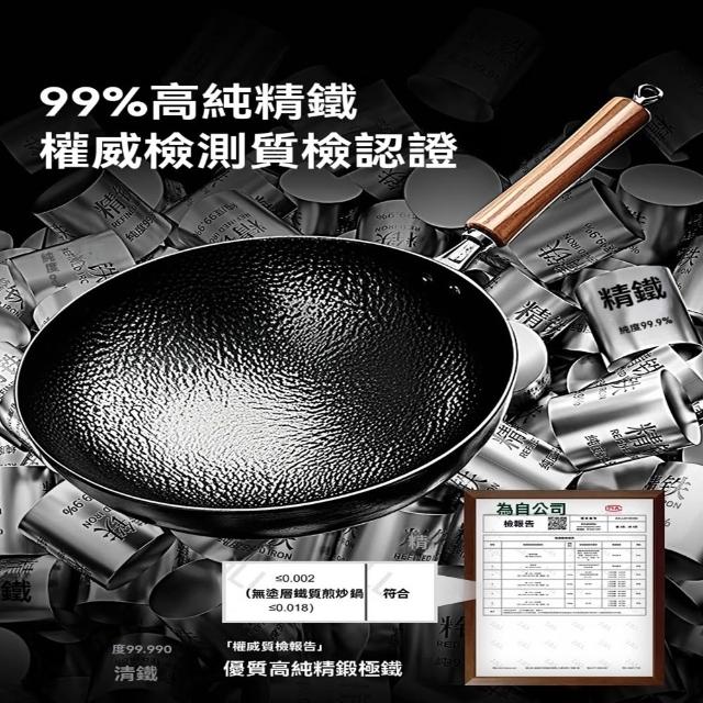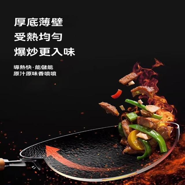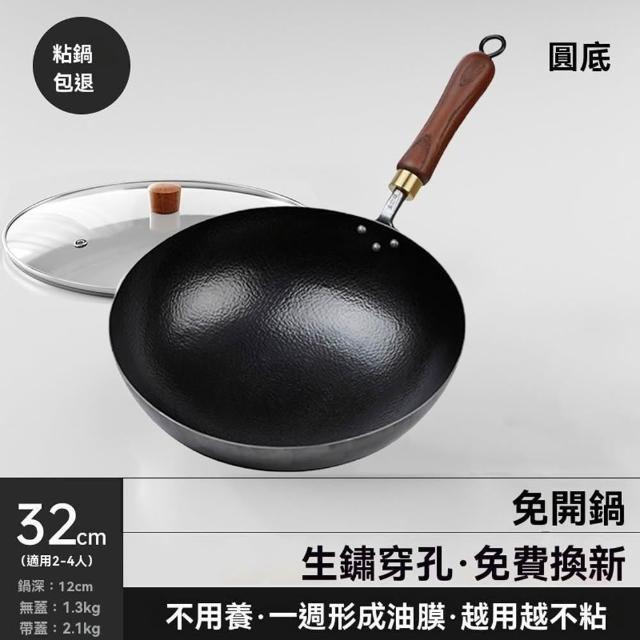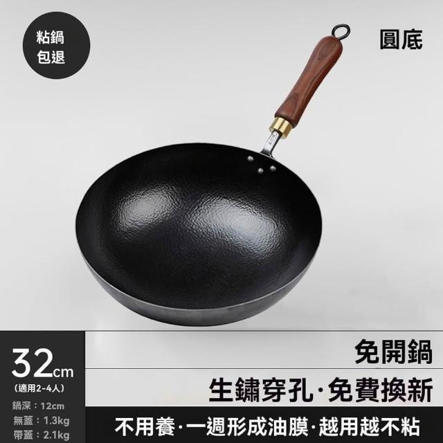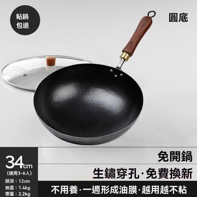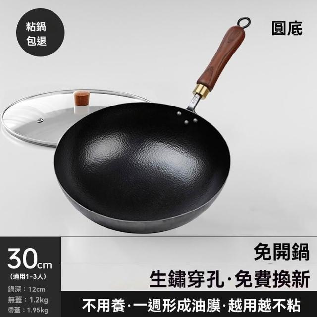 章丘鐵鍋 传统老式家用炒鍋 手工鍛打圓底鍋 炒勺炒菜鍋 煮鍋 深煎鍋 老式炒鍋(懸浮技術/單手顛鍋/可視鍋蓋/櫸木手柄)