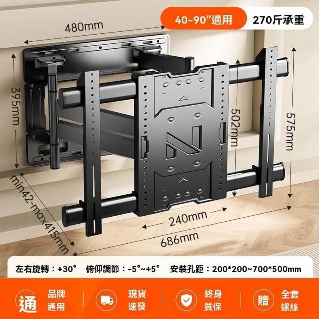 40-110吋伸縮旋轉電視架 電視架 電視掛架 電視壁掛架 手臂式液晶電視掛架(4.2cm至薄牆距/8臂支撐/雙臂螺栓)