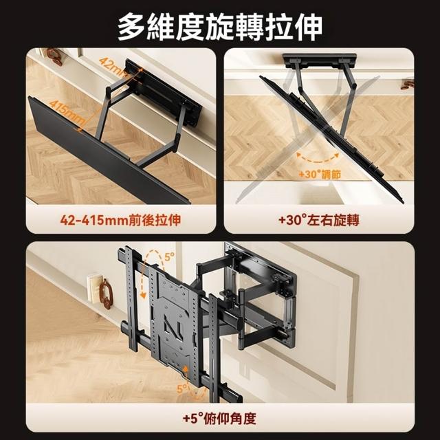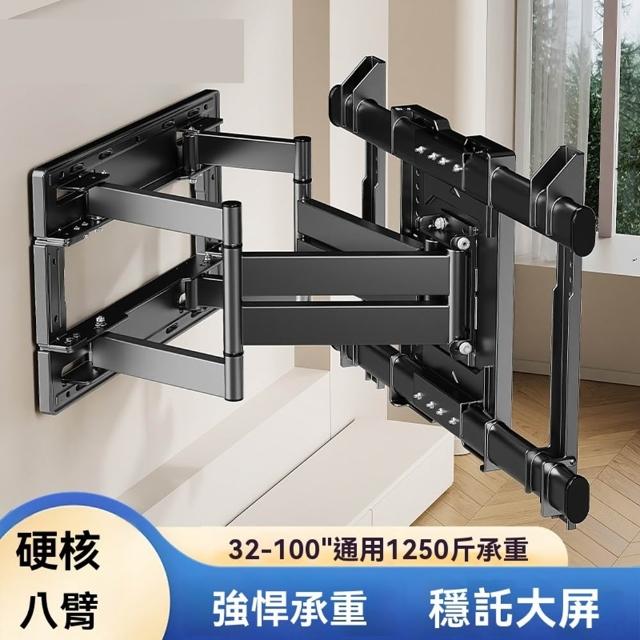 40-110吋伸縮旋轉電視架 電視架 電視掛架 電視壁掛架 手臂式液晶電視掛架(4.2cm至薄牆距/8臂支撐/雙臂螺栓)