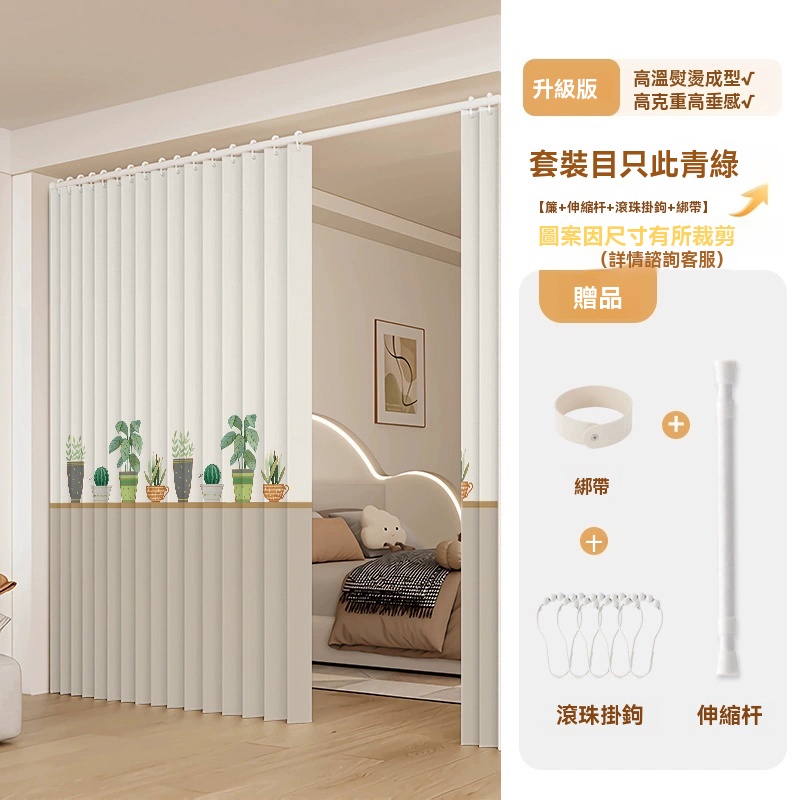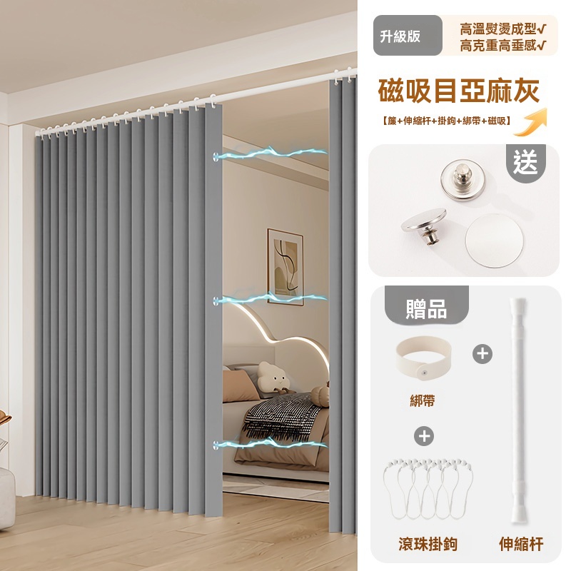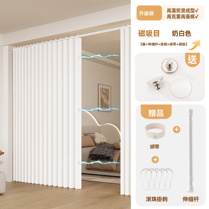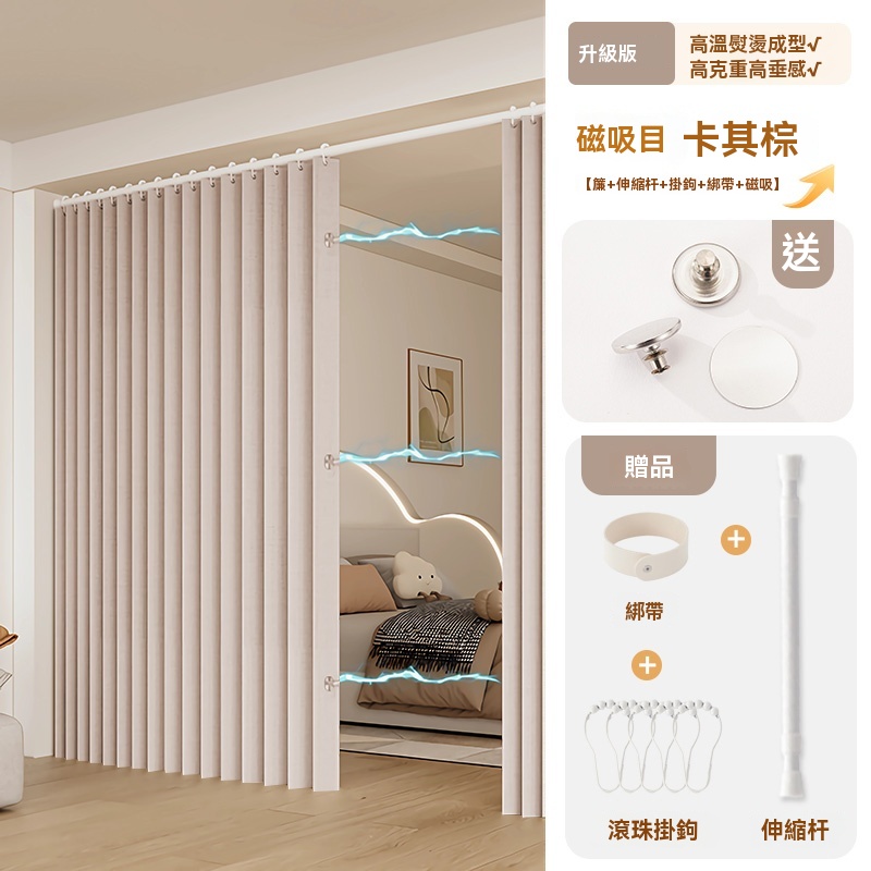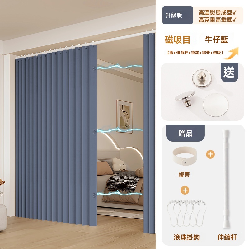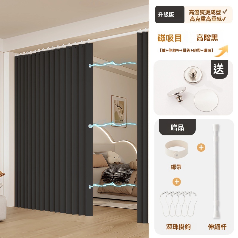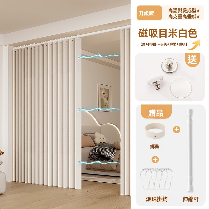 可訂製 隱形折疊門簾 隔斷簾 磁吸折疊浴簾 窗簾 防水浴室簾子(高溫定型/荷葉滾珠面料/免打孔安裝/升級防水塗層)