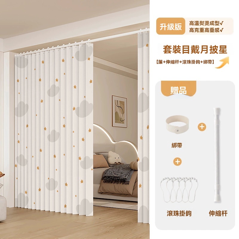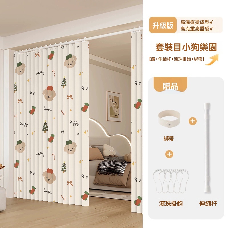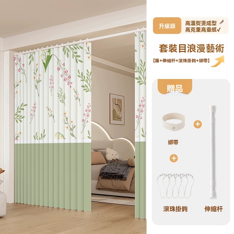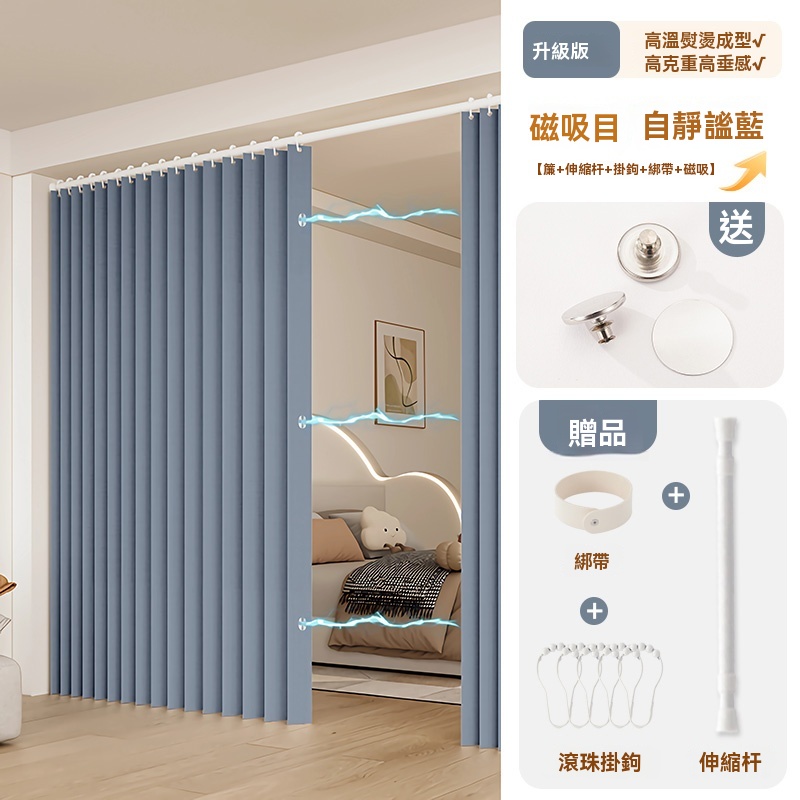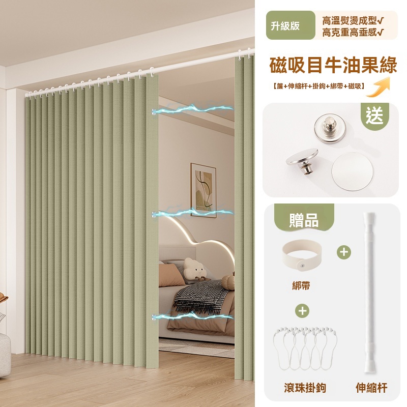 可訂製 隱形折疊門簾 隔斷簾 磁吸折疊浴簾 窗簾 防水浴室簾子(高溫定型/荷葉滾珠面料/免打孔安裝/升級防水塗層)