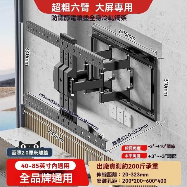 八臂實心軸🔥大屏優選 手臂式液晶電視壁掛架 電視架 熒幕掛架 電視掛架 伸縮電視架(左右旋轉+俯仰角調節+超大底座)