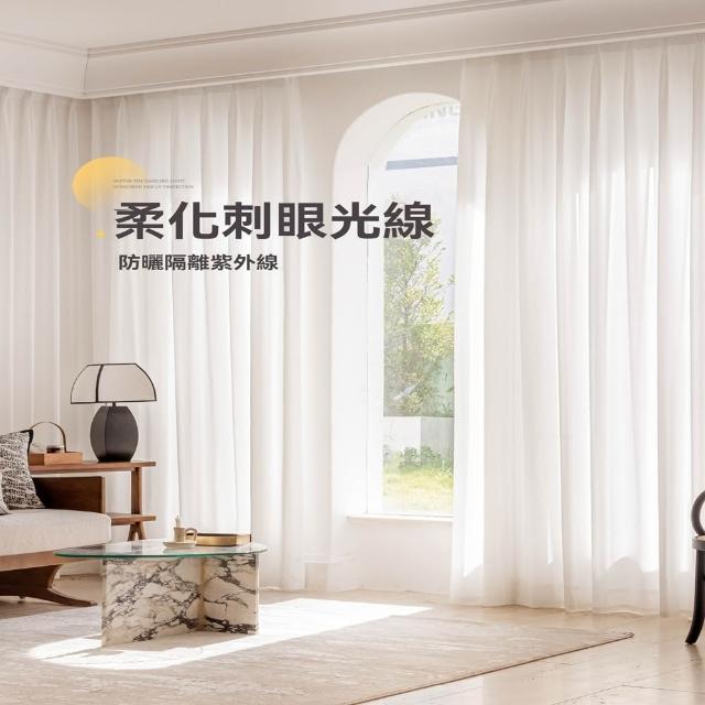 日式加厚防颳幻影紗 窗簾 白色紗簾 透光窗簾紗 透光不透人 隔斷紗(魚骨斜紋肌理/不怕貓爪/方便機洗/易於打理/附掛鉤)