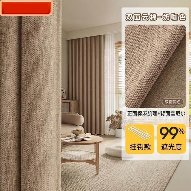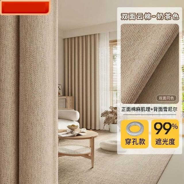 可客制化 全遮光窗簾 高精密隔熱窗簾 加厚棉麻布簾臥室 防紫外線 宿舍床簾(99%遮光/棉麻肌理/不沾灰/黑金覆蓋)