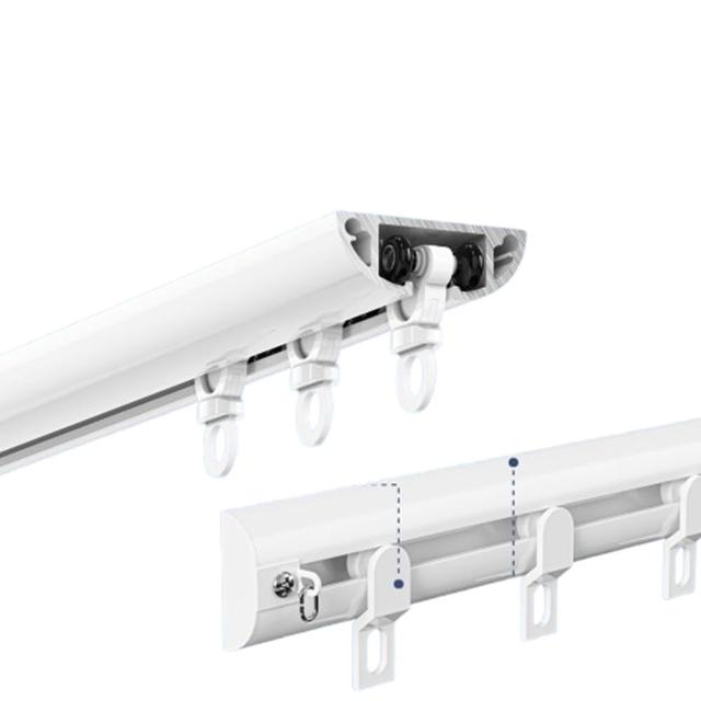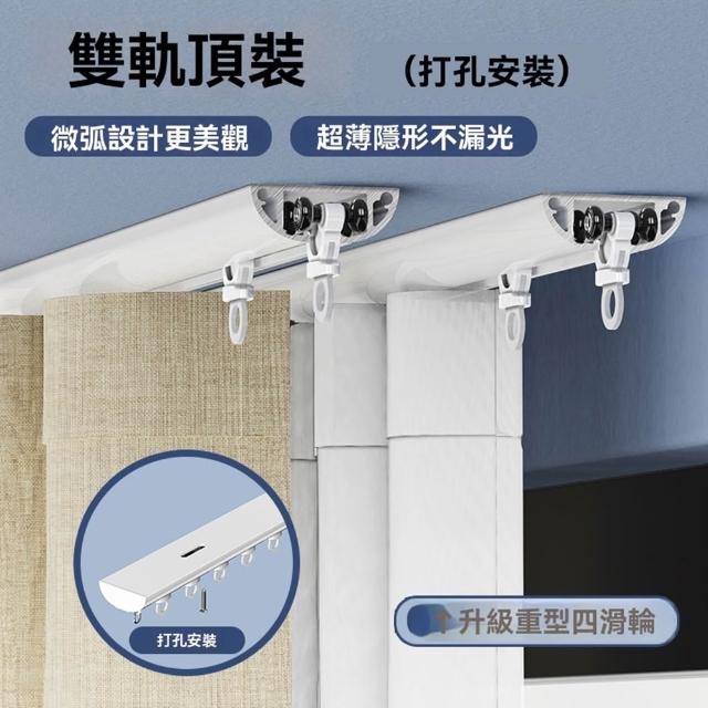 自粘式窗簾軌道 免打孔安裝滑軌滑輪 靜音窗簾軌道 頂裝側裝滑道 粘貼滑軌(弧形結構/加厚鋁合金/免打孔安裝/牢固不掉)