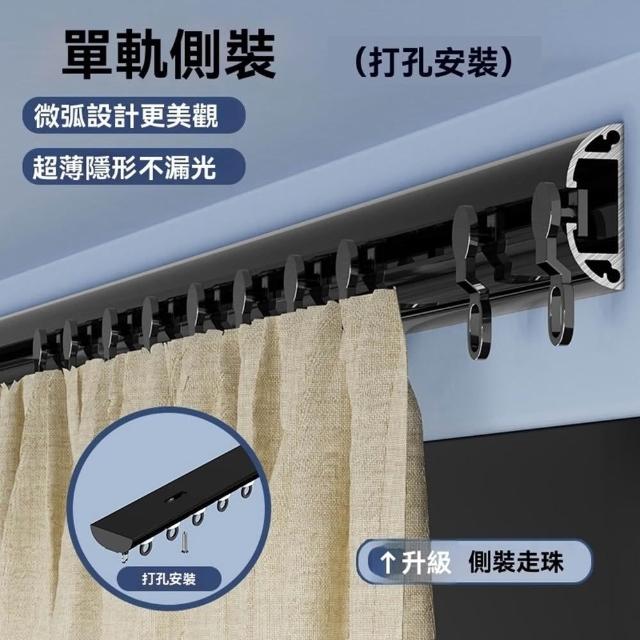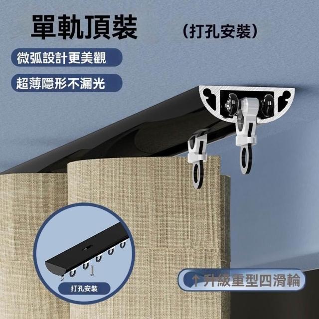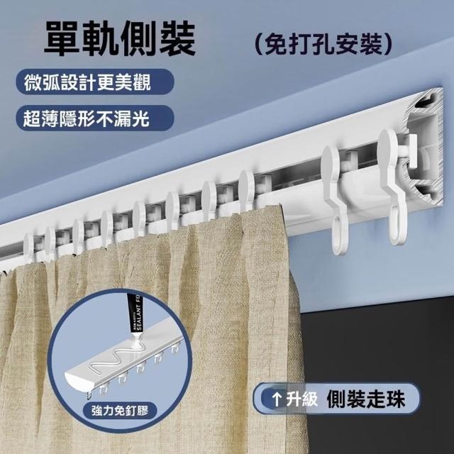 自粘式窗簾軌道 免打孔安裝滑軌滑輪 靜音窗簾軌道 頂裝側裝滑道 粘貼滑軌(弧形結構/加厚鋁合金/免打孔安裝/牢固不掉)