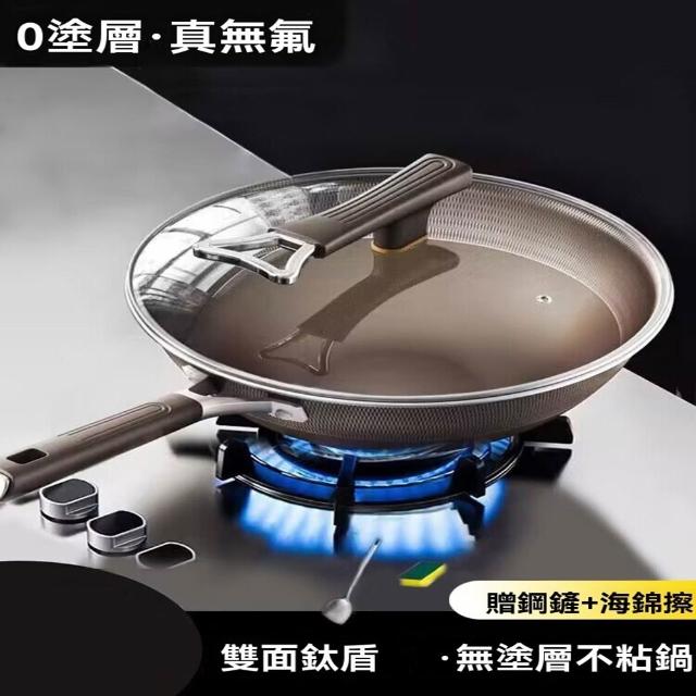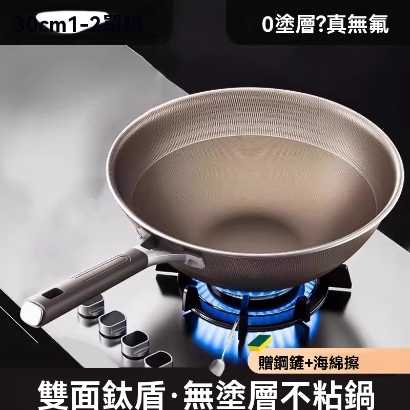 雙面鈦盾不沾炒鍋 鈦鍋 鈦炒鍋 不沾鍋 有鈦不沾鍋 耐刮 炒菜鍋 適用電磁爐(物理不沾鍋/鍋柄掛孔/不沾耐刮/雙面鈦盾)