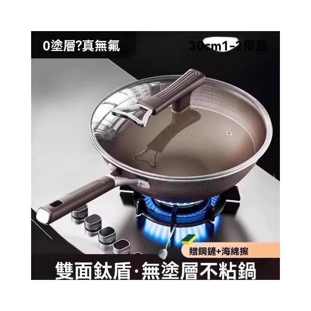 雙面鈦盾不沾炒鍋 鈦鍋 鈦炒鍋 不沾鍋 有鈦不沾鍋 耐刮 炒菜鍋 適用電磁爐(物理不沾鍋/鍋柄掛孔/不沾耐刮/雙面鈦盾)