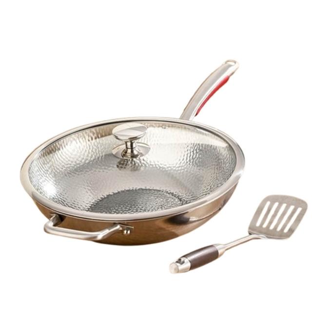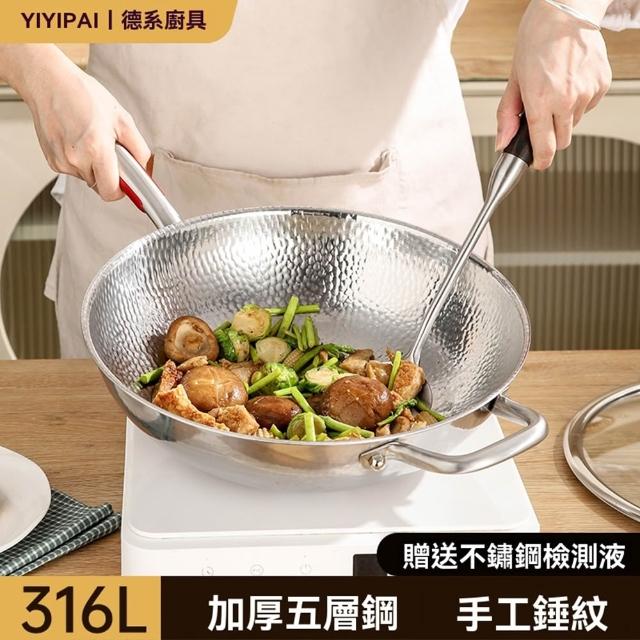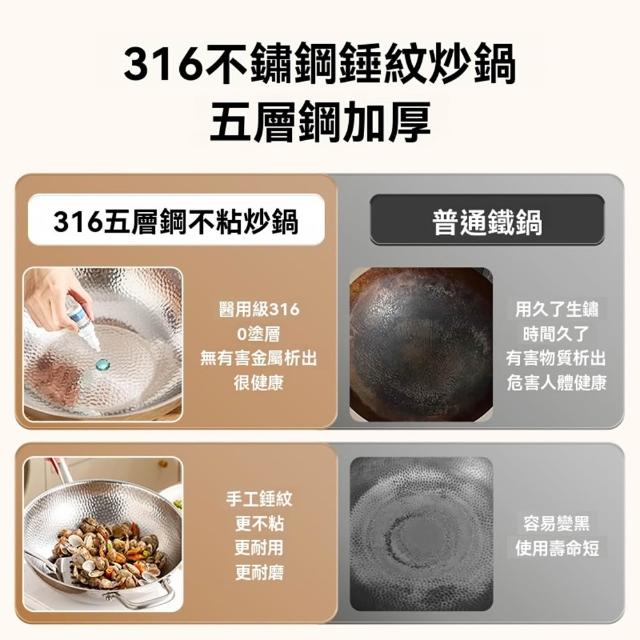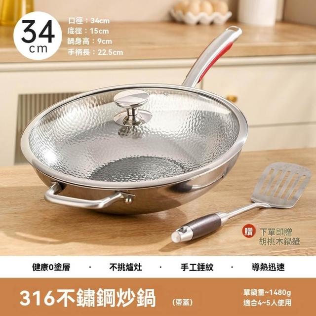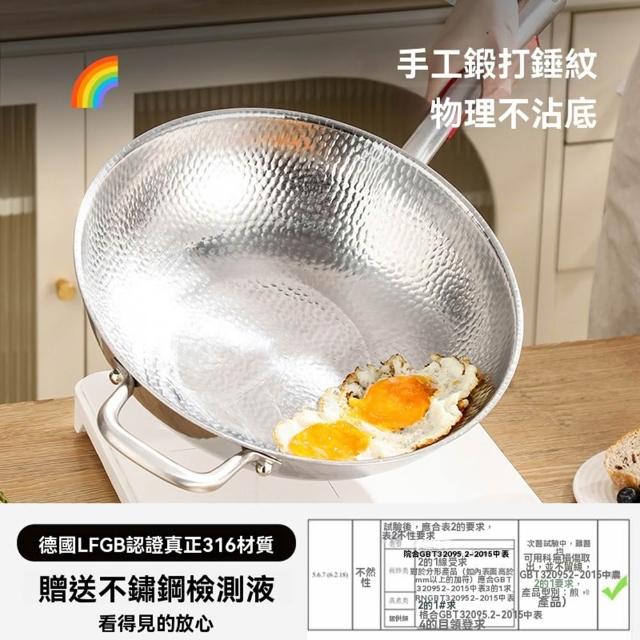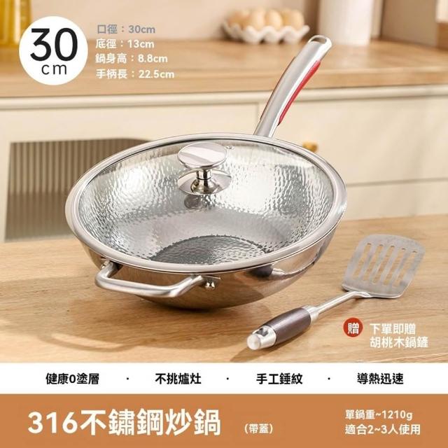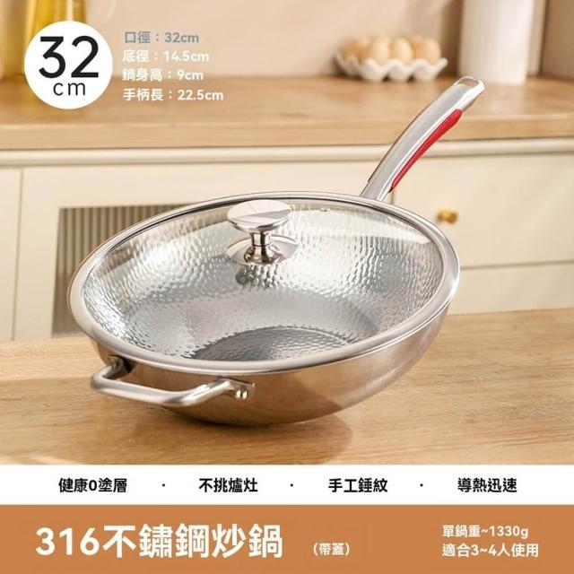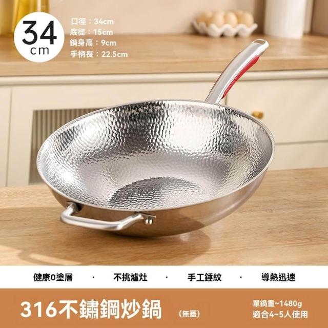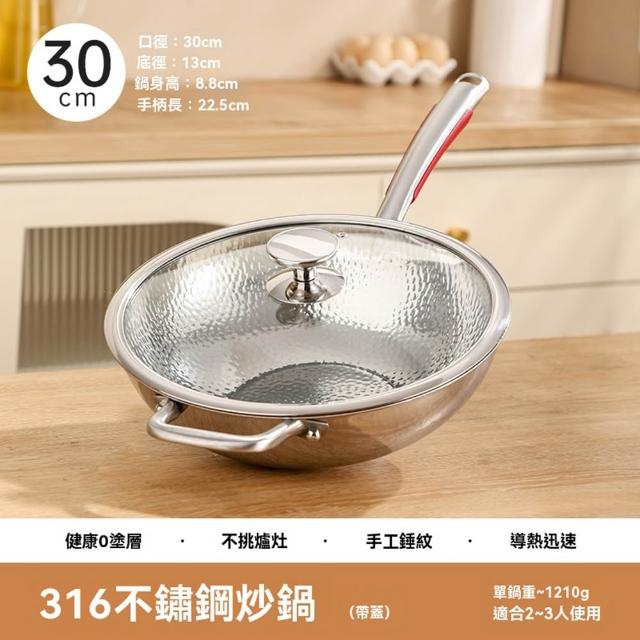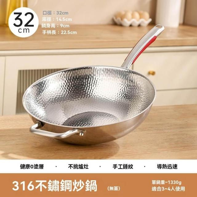 316不鏽鋼錘紋炒鍋 炒菜鍋 不沾鍋 炒鍋 燉煮鍋 煎鍋 煎蛋鍋 無塗層不粘鍋 電磁爐用(鍛打錘紋/物理不沾/手工鍛造)