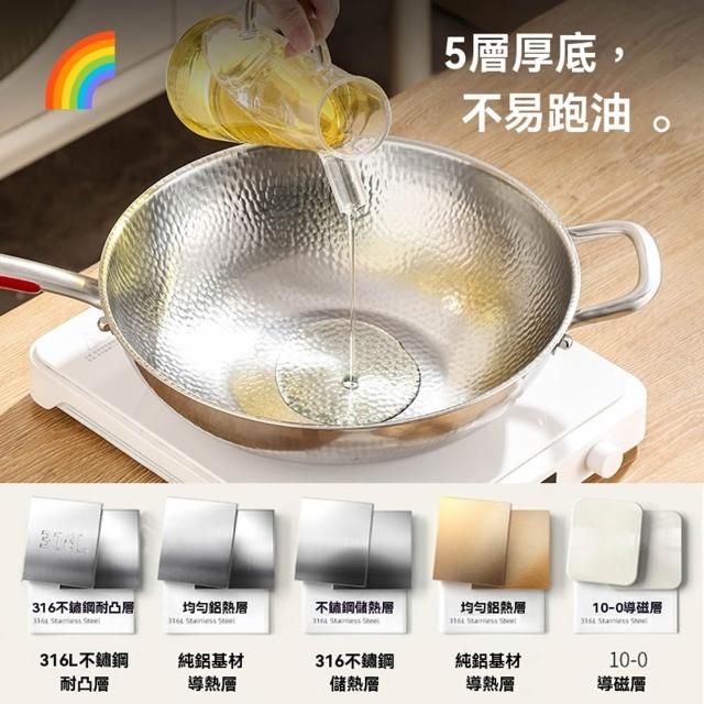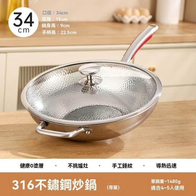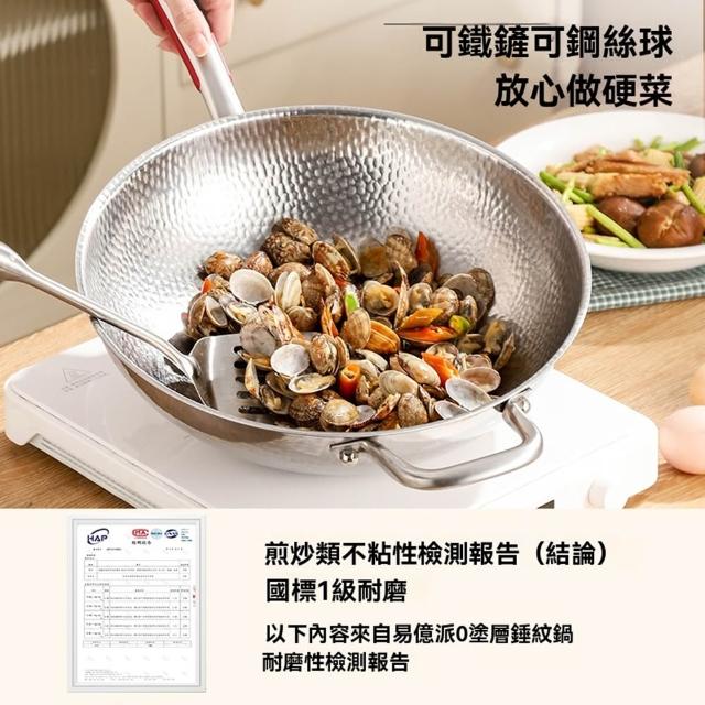 316不鏽鋼錘紋炒鍋 炒菜鍋 不沾鍋 炒鍋 燉煮鍋 煎鍋 煎蛋鍋 無塗層不粘鍋 電磁爐用(鍛打錘紋/物理不沾/手工鍛造)