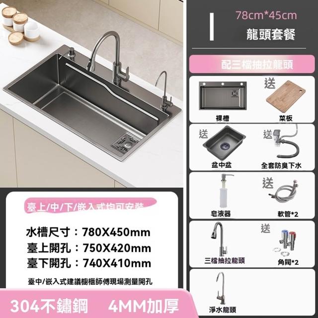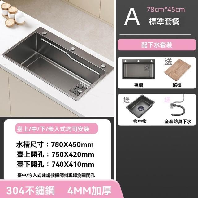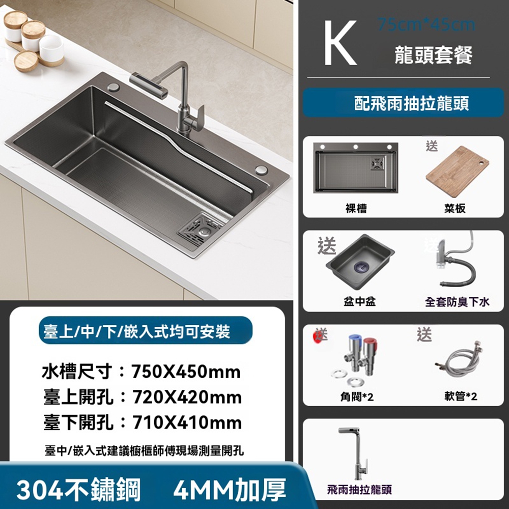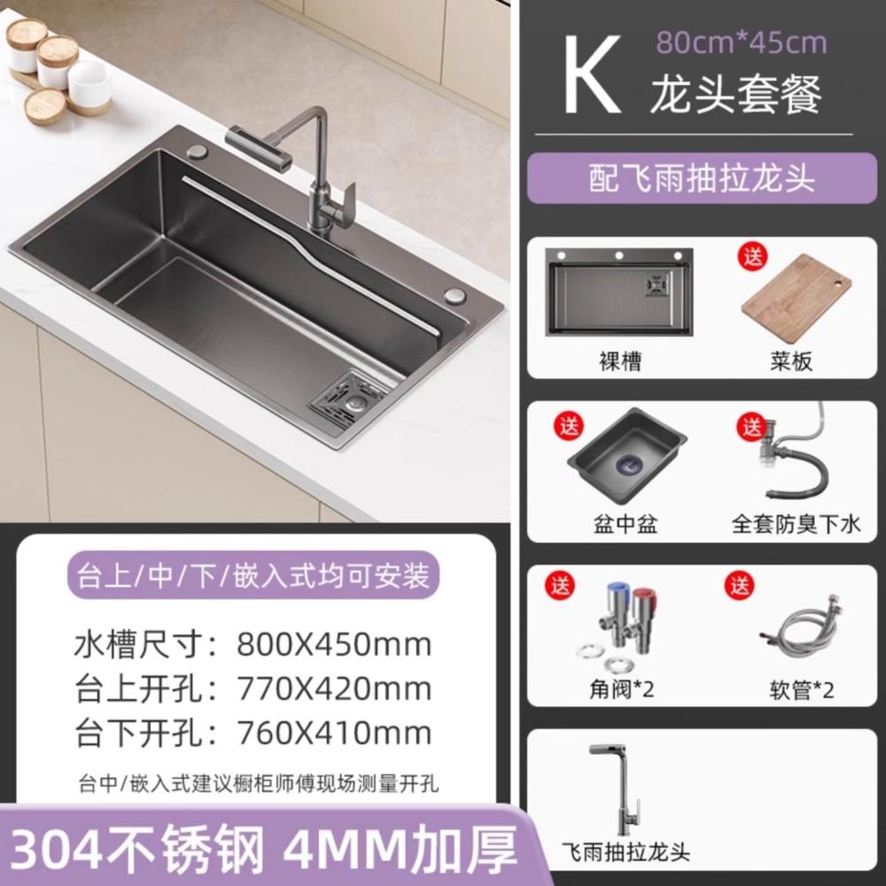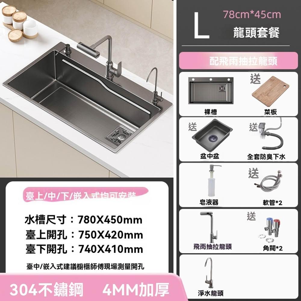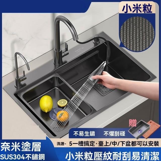 304不鏽鋼🔥小米粒壓紋 飛雨瀑布水槽 納米塗層不鏽鋼水槽 廚房水槽 洗碗槽(升級滑軌功能/環形導流/22cm大容量)