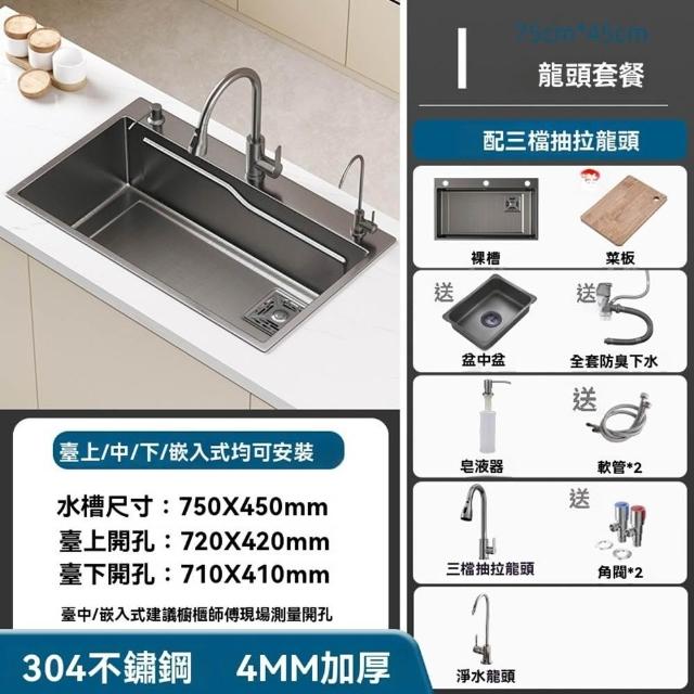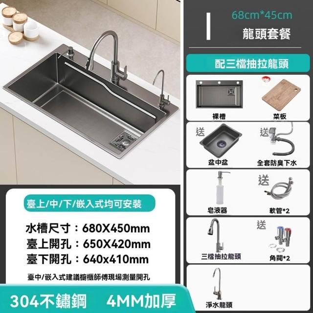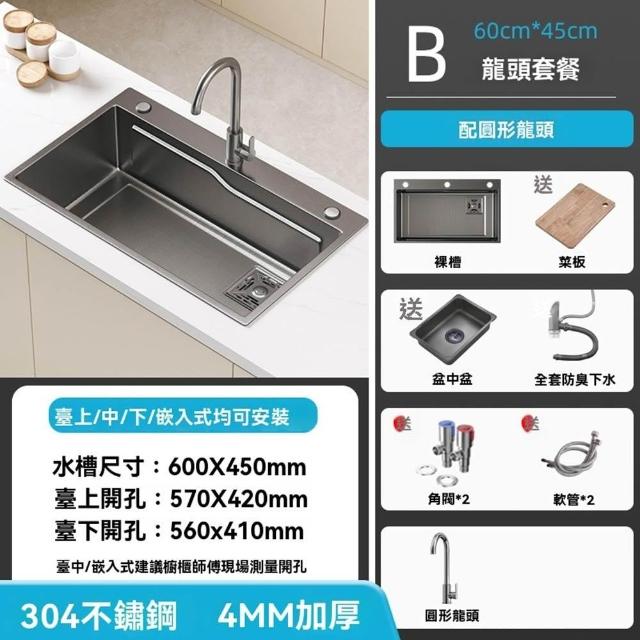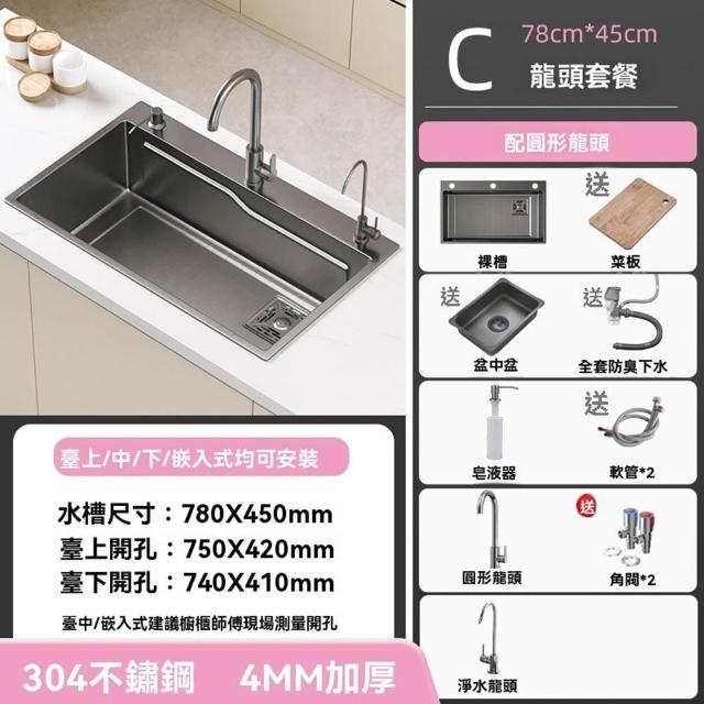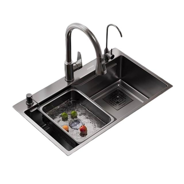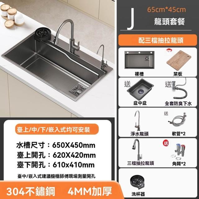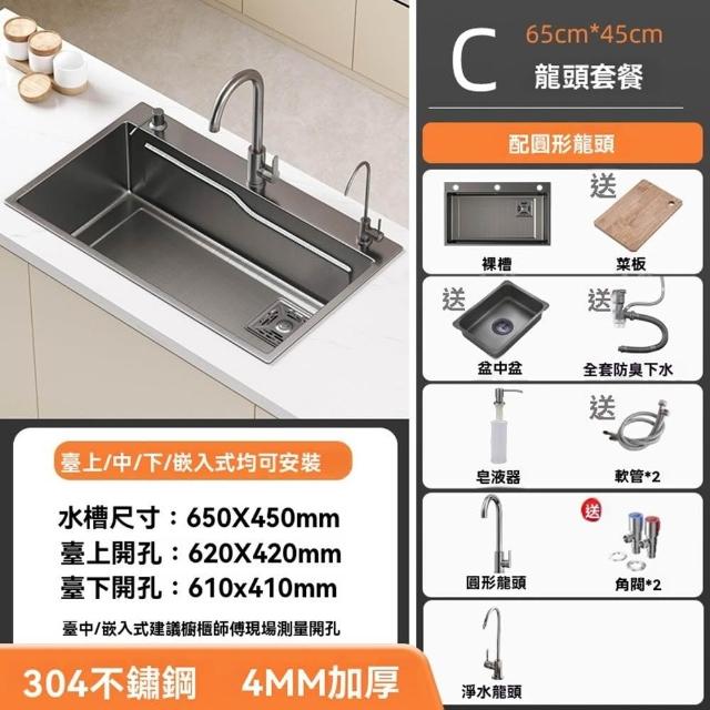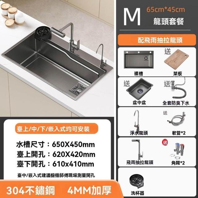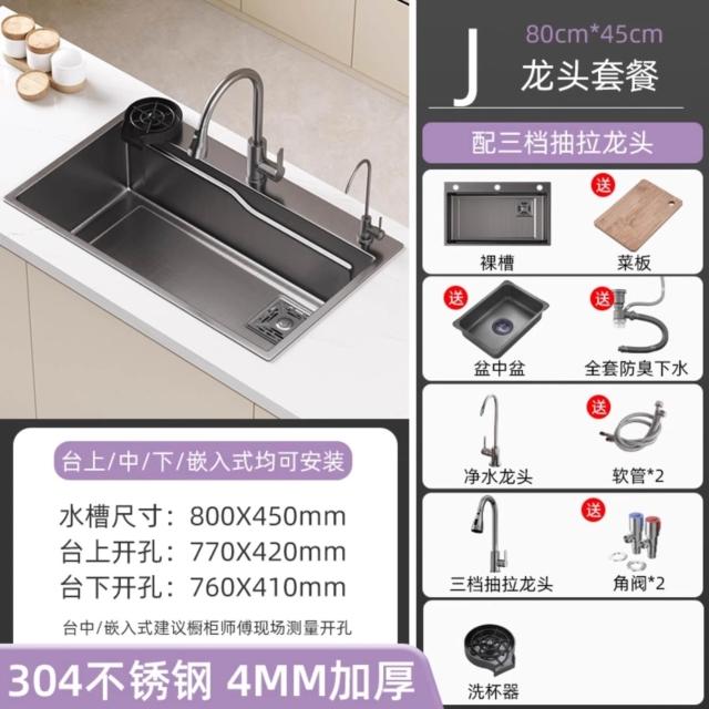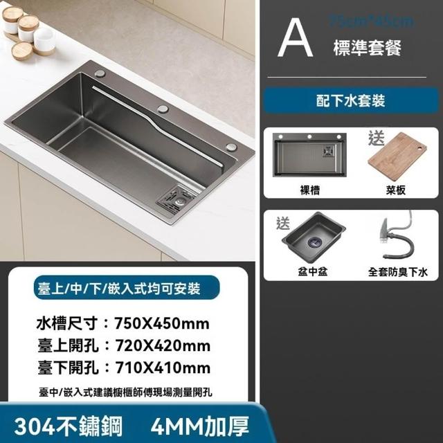 304不鏽鋼🔥小米粒壓紋 飛雨瀑布水槽 納米塗層不鏽鋼水槽 廚房水槽 洗碗槽(升級滑軌功能/環形導流/22cm大容量)