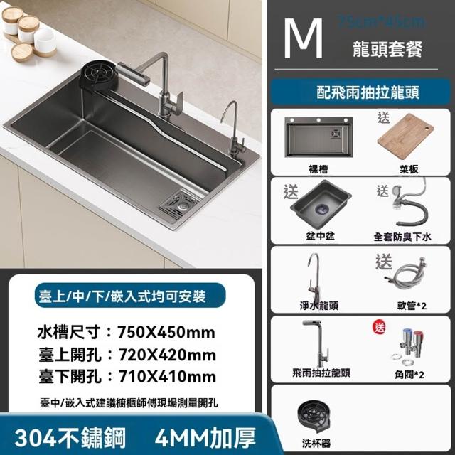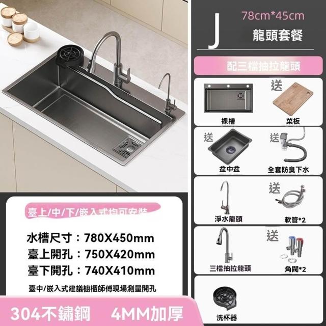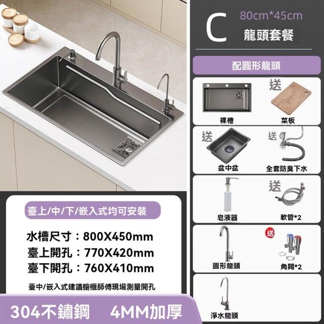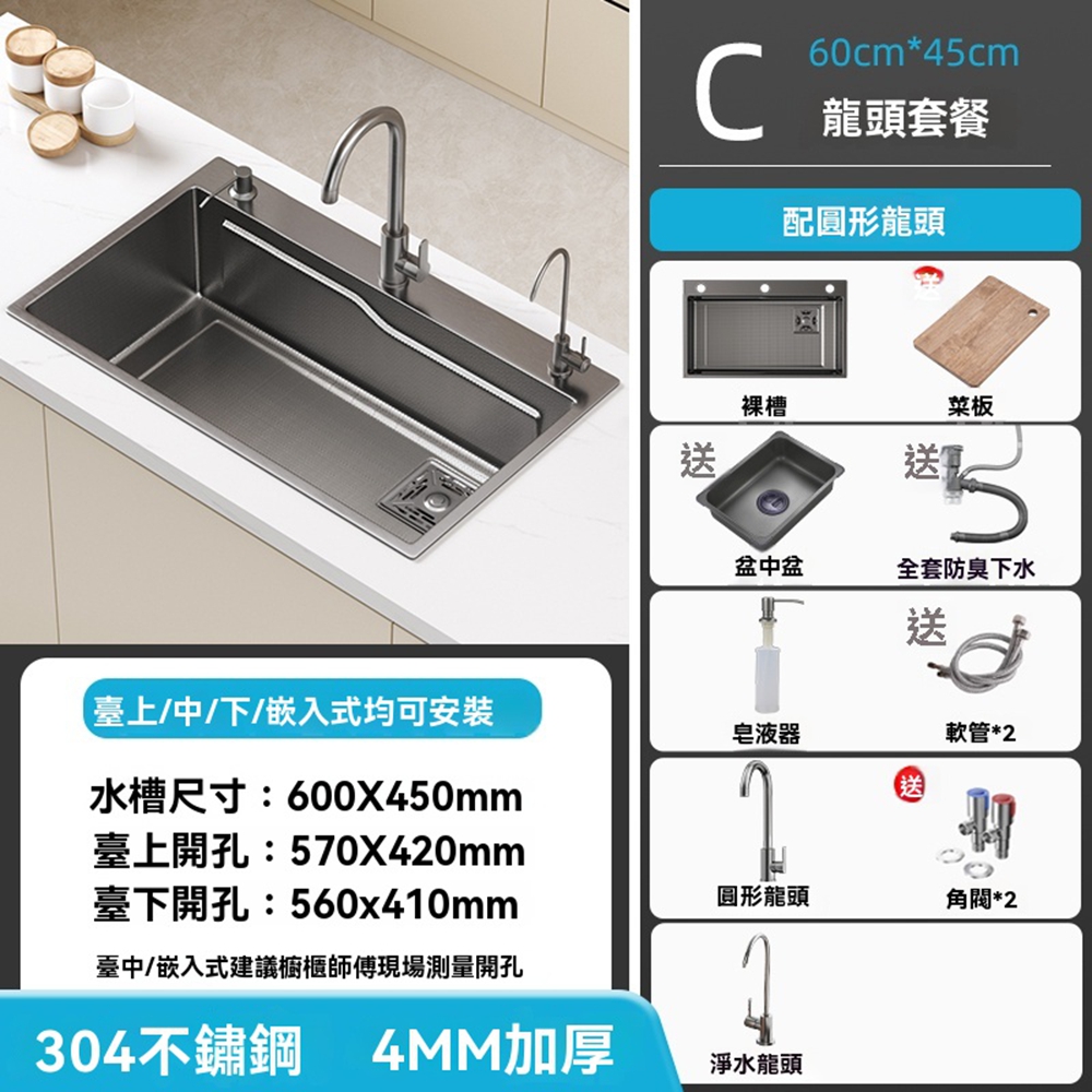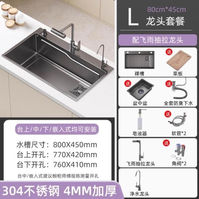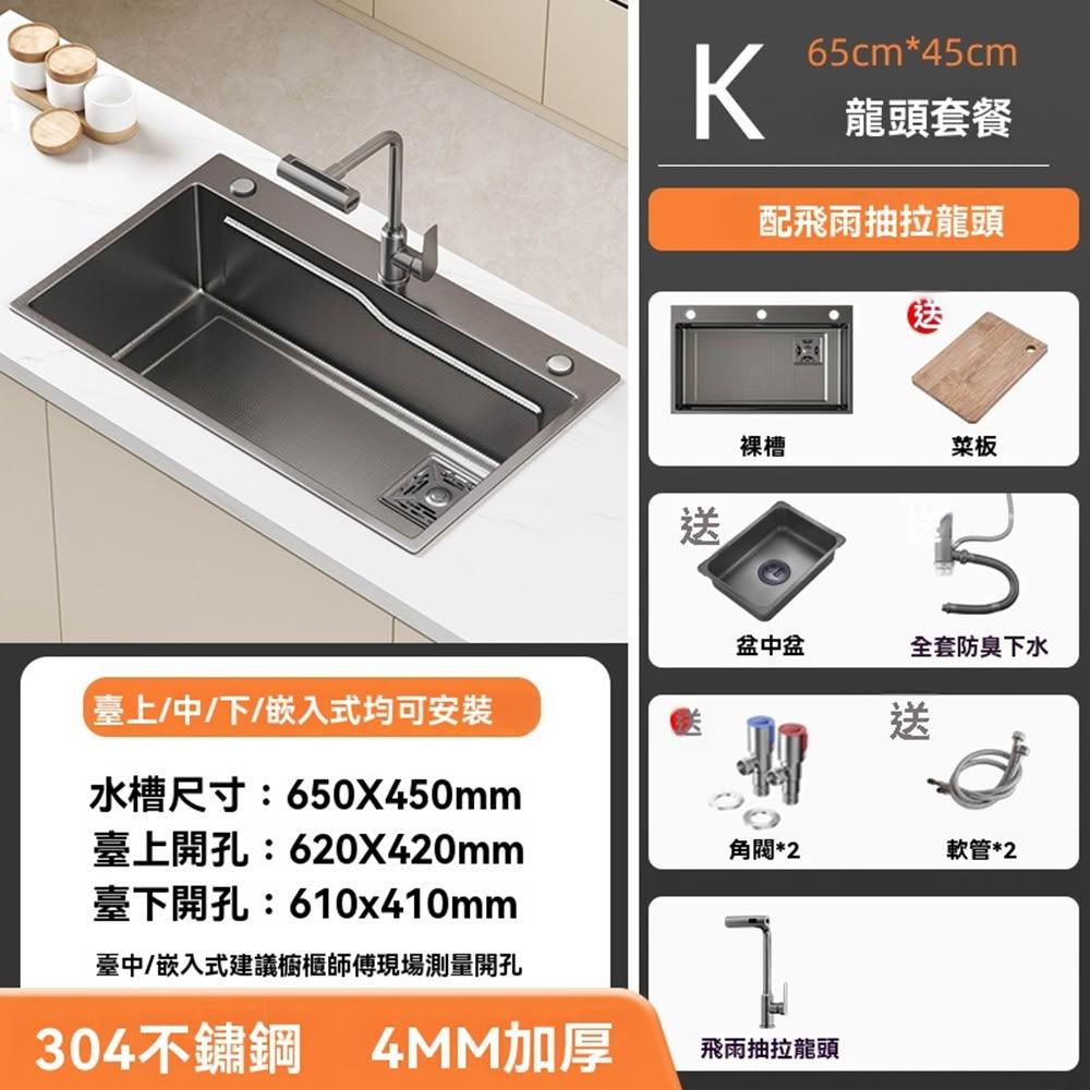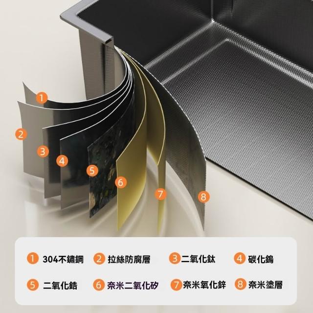 304不鏽鋼🔥小米粒壓紋 飛雨瀑布水槽 納米塗層不鏽鋼水槽 廚房水槽 洗碗槽(升級滑軌功能/環形導流/22cm大容量)