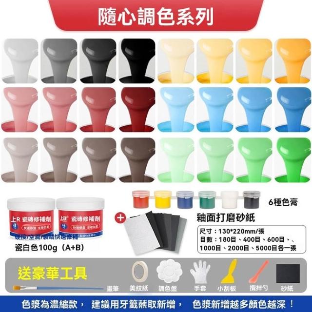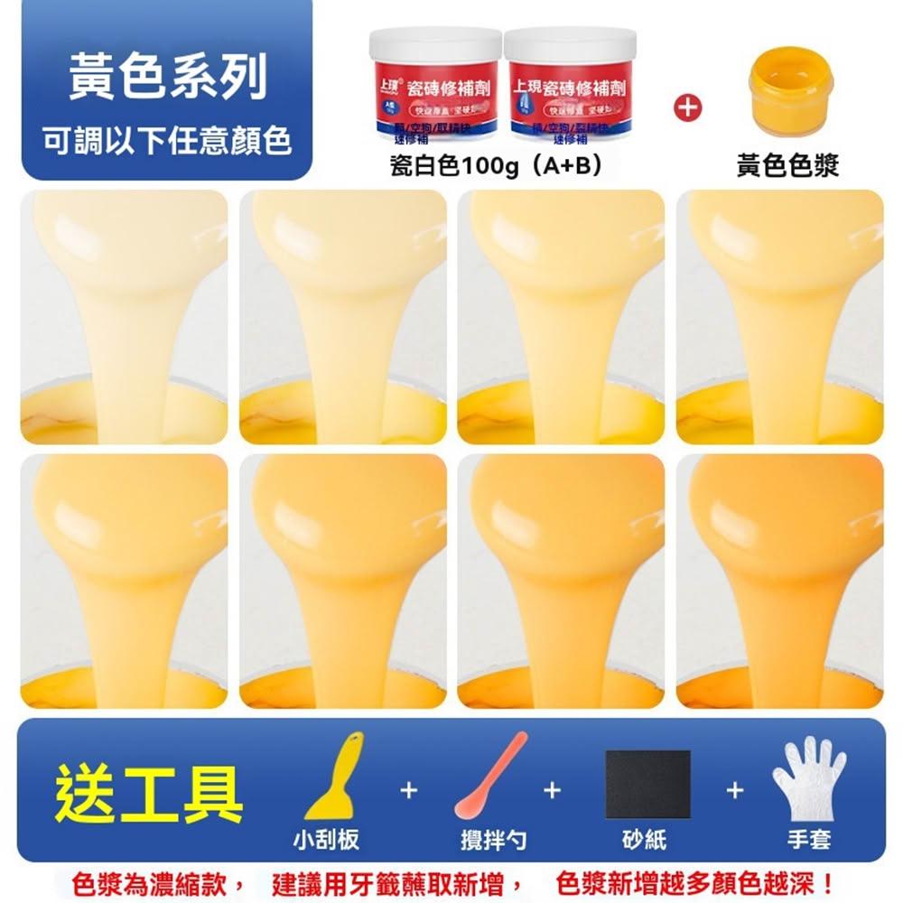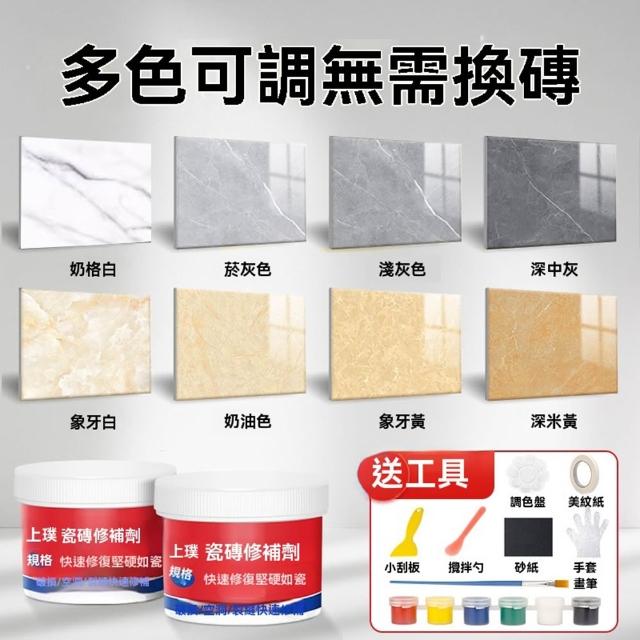 陶瓷修補劑 瓷磚修補劑 瓷器修補劑 大理石地板磚 陶瓷膏修補膠 浴缸翻修 馬桶翻修(AB混合施工/無需換磚/贈豪華工具)