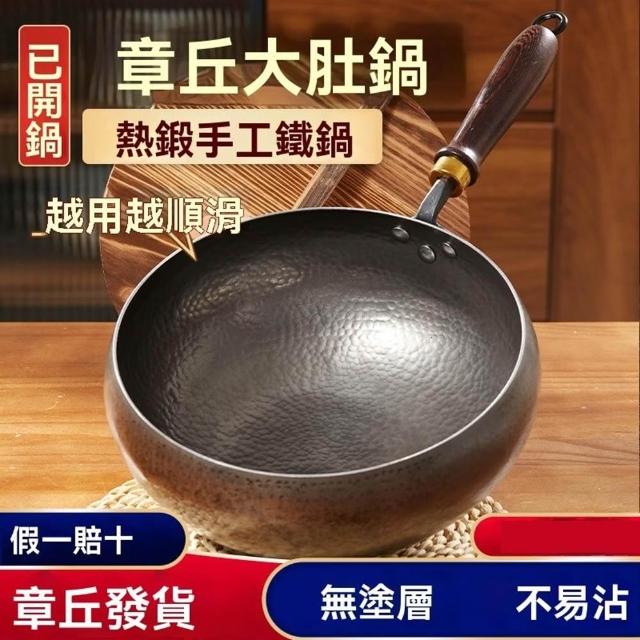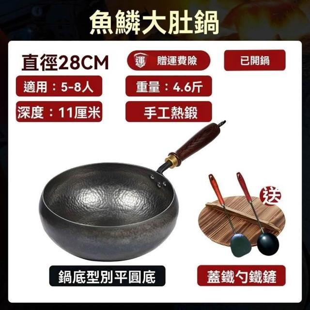魚鱗款🔥章丘古法大肚鐵鍋 大肚鍋 無塗層不沾鍋 大肚炒鍋 純鐵大肚鍋 平底鍋 炒鍋 手工鍛造鑄鐵鍋 不挑爐灶