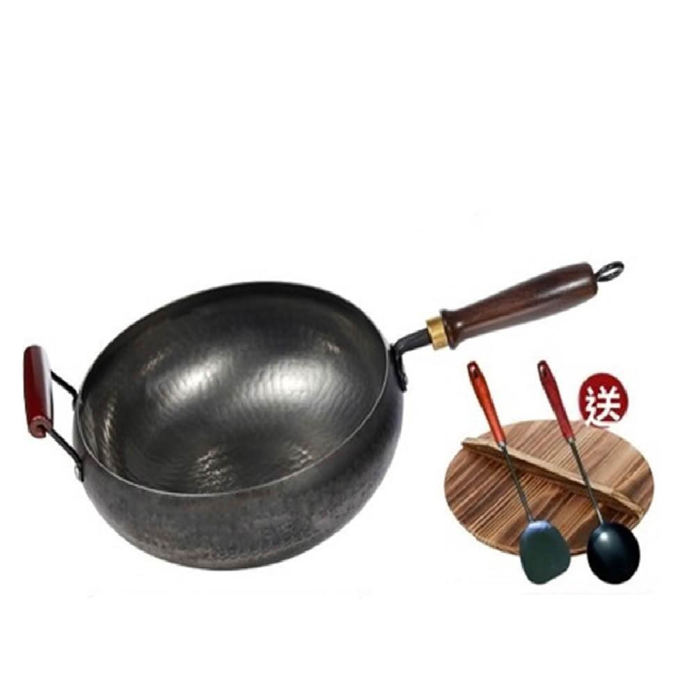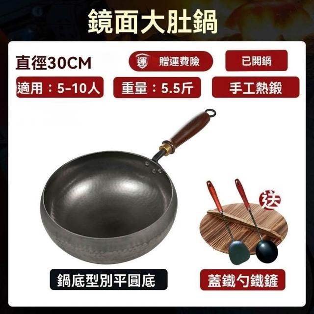 魚鱗款🔥章丘古法大肚鐵鍋 大肚鍋 無塗層不沾鍋 大肚炒鍋 純鐵大肚鍋 平底鍋 炒鍋 手工鍛造鑄鐵鍋 不挑爐灶