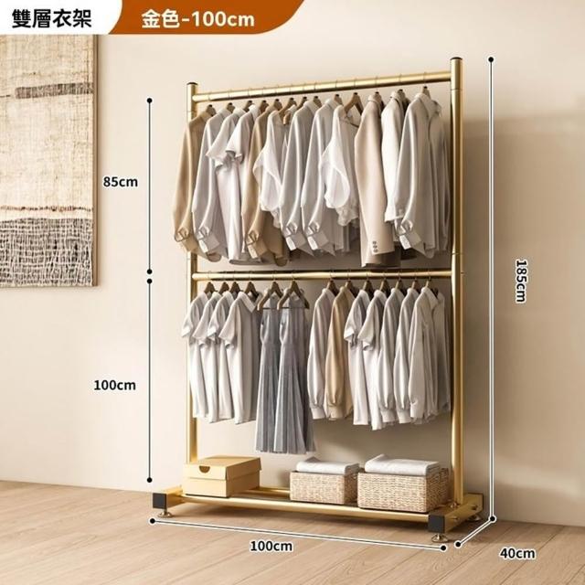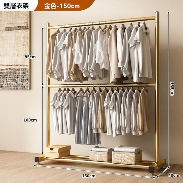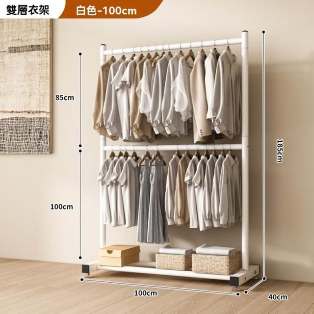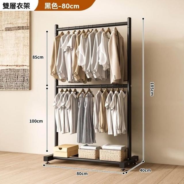碳鋼雙層晾衣架 落地挂衣架 雙桿衣架 雙層衣架桿 加粗雙排晾衣架 掛衣架 曬衣架 衣架(底腳可調高/底部置物/雙層掛衣)