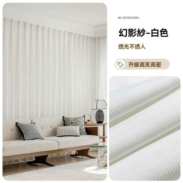日式加厚防颳幻影紗 透光不透人 窗簾 白色紗簾 透光窗簾紗 隔斷紗(魚骨斜紋肌理/不怕貓爪/方便機洗/易於打理/附掛鉤)