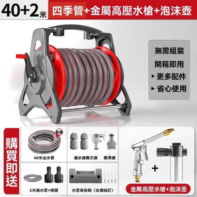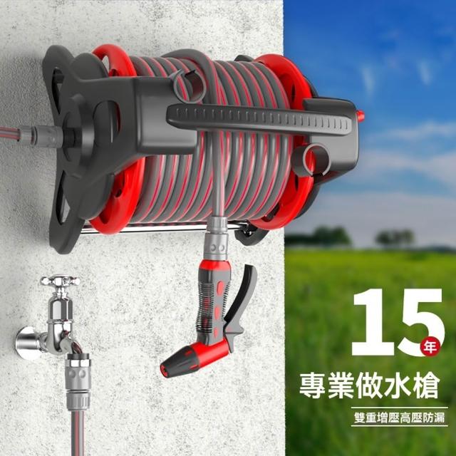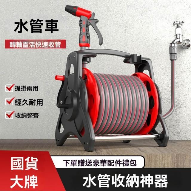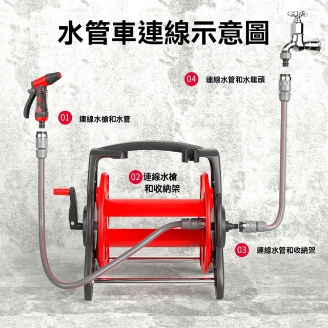 自動收卷水管車 水管收納車 水管車 水管架 水管收納架 捲線器 洗車水管(提掛兩用/無需組裝/3種噴水模式/自動排管)