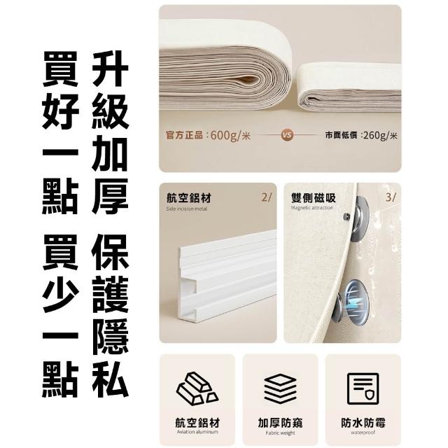磁吸窗簾布 加厚遮光磁吸款 落地窗窗簾 99%遮光簾 隔熱隔音窗簾 臥室陽台打孔掛鉤穿桿窗廉(仿生荷葉防水/雙側磁吸)