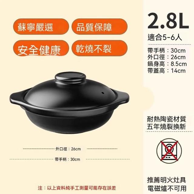 日式砂鍋 附蓋 雙耳砂鍋 燉鍋 陶鍋 土鍋 火鍋 悶燒鍋 鍋子 鍋具 煲仔飯鍋(幹燒不裂/聚溫節能/蒸汽循環/一洗即凈)