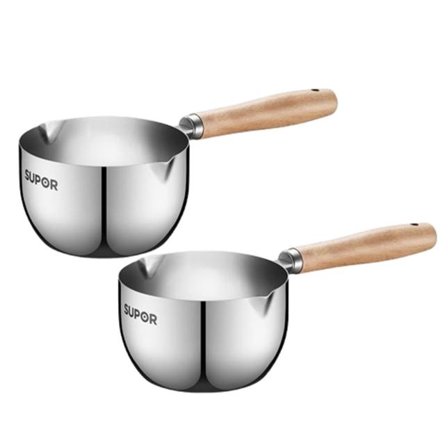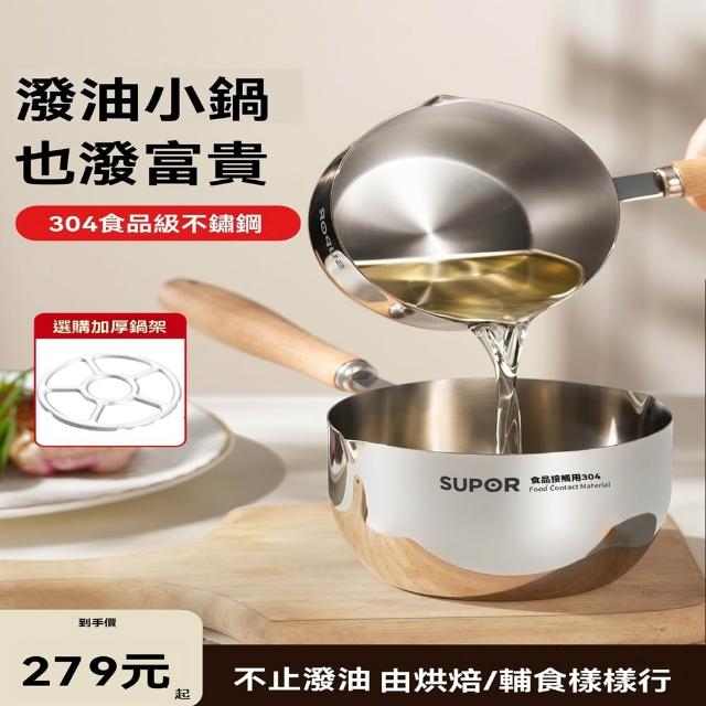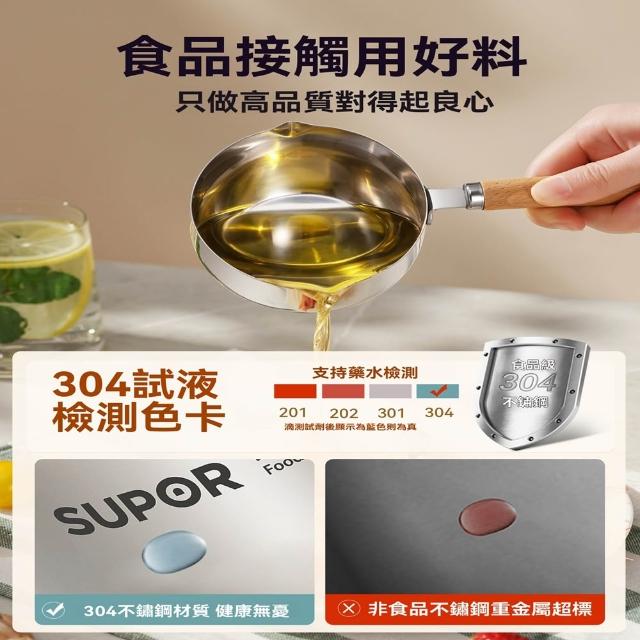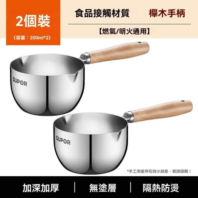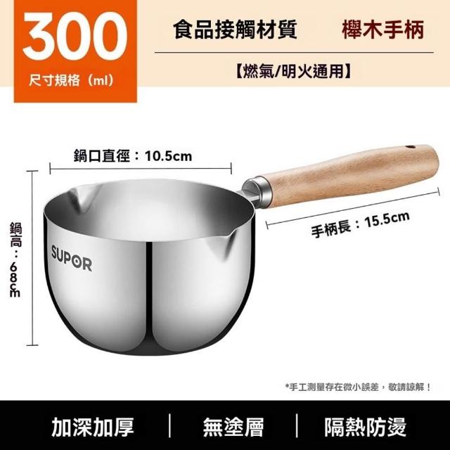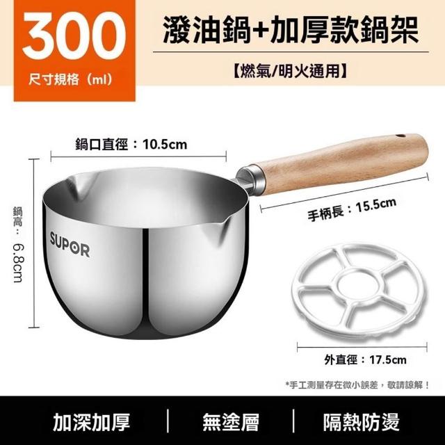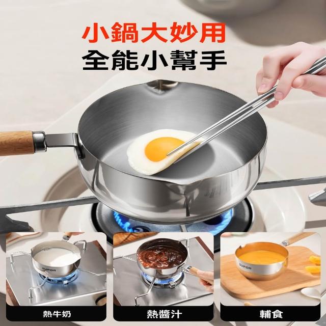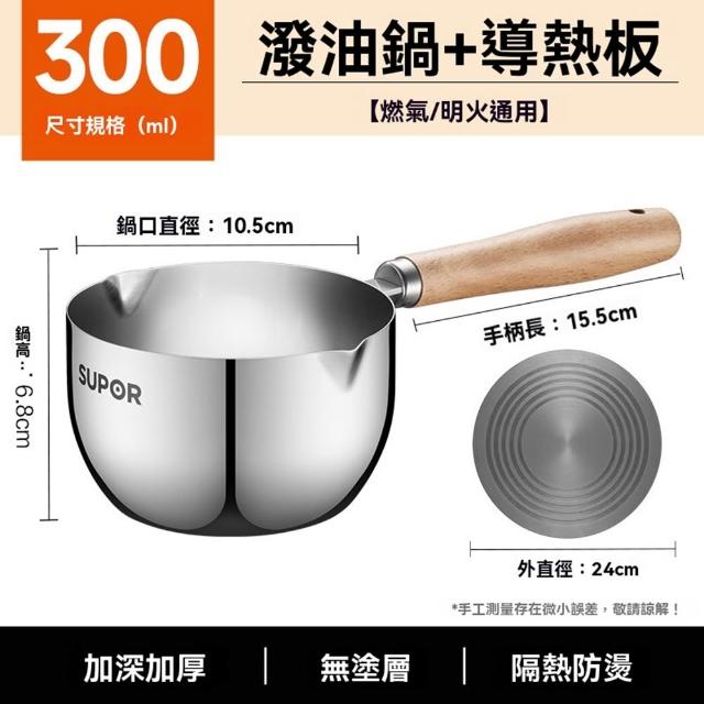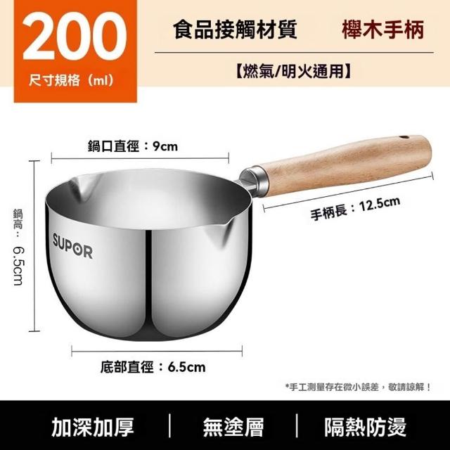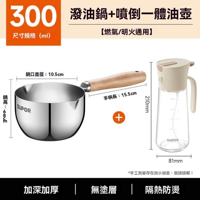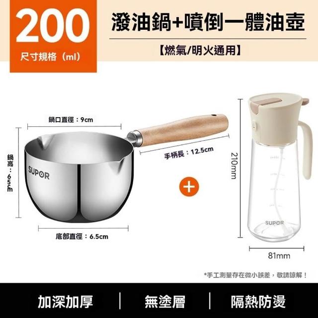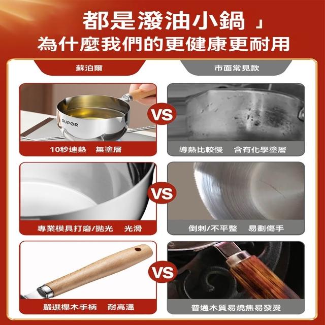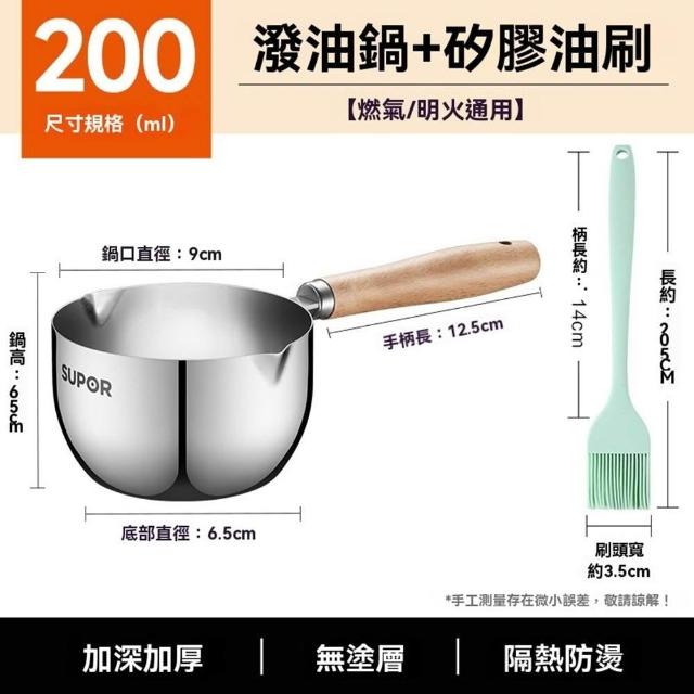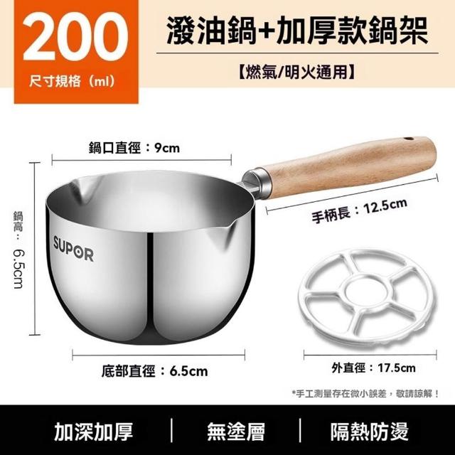 不鏽鋼潑油勺 熱油鍋 潑油小鍋 小油鍋 熱油神器 燒油熗油鍋 刻度量杯 熱油鍋 熗油小鍋(加深加厚/無塗層/櫸木手柄)