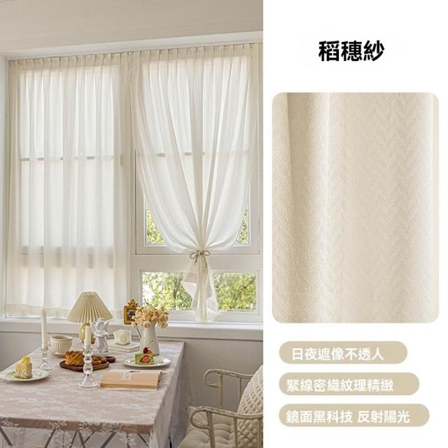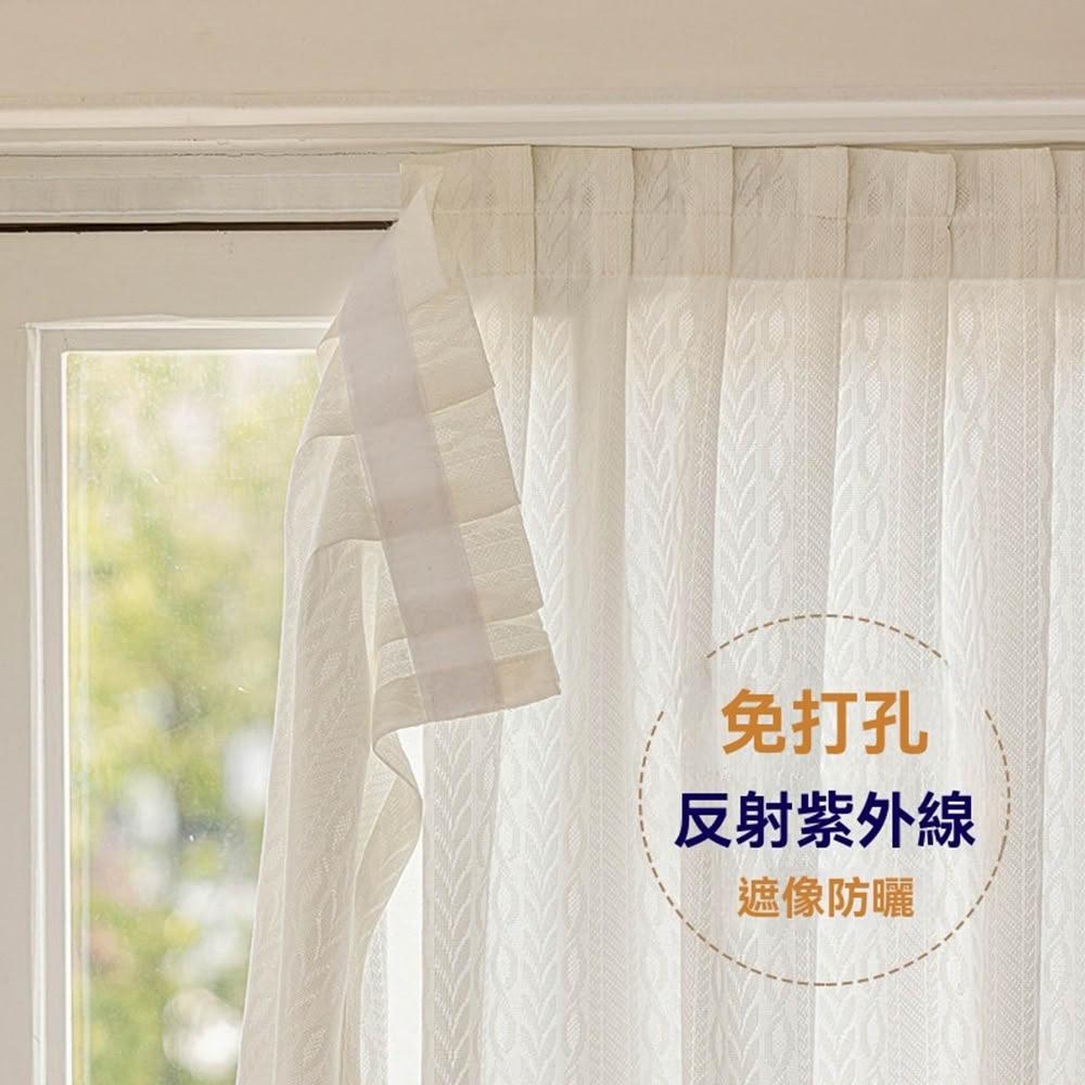 魔鬼氈加厚純色窗簾 魔鬼氈安裝 遮光窗簾 免打孔 免釘窗簾 魔術貼窗簾(立體花紋/鏡面紗/透光不透人/自帶1.6倍褶皺)