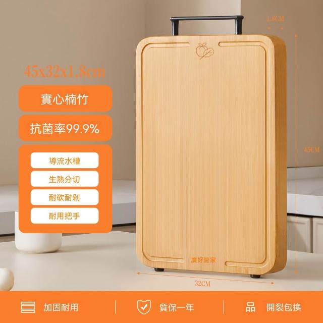 實木砧板 木砧板 天然竹砧板 雙面砧板 實木砧板 剁肉板 廚房砧板(雙面分切/1.8cm加厚/金屬提手/高山楠竹原料)