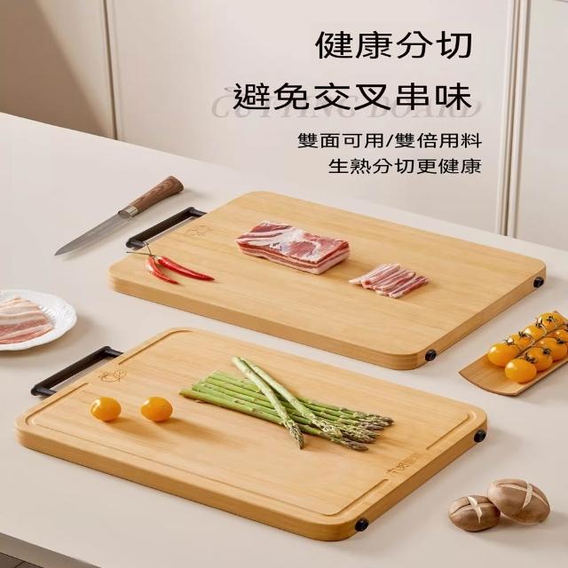 實木砧板 木砧板 天然竹砧板 雙面砧板 實木砧板 剁肉板 廚房砧板(雙面分切/1.8cm加厚/金屬提手/高山楠竹原料)