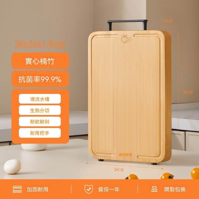 實木砧板 木砧板 天然竹砧板 雙面砧板 實木砧板 剁肉板 廚房砧板(雙面分切/1.8cm加厚/金屬提手/高山楠竹原料)