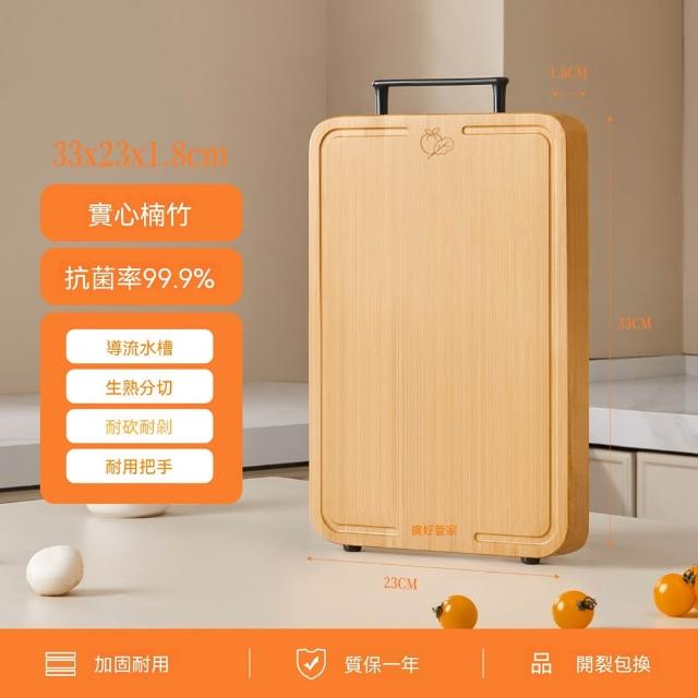 實木砧板 木砧板 天然竹砧板 雙面砧板 實木砧板 剁肉板 廚房砧板(雙面分切/1.8cm加厚/金屬提手/高山楠竹原料)