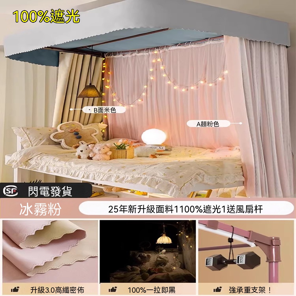 免打孔導軌蚊帳 伸縮U型蚊帳 上下舖床簾 遮光床簾 宿舍床簾 隱私窗簾 床鋪窗簾 上下舖窗簾(加高防塵頂/可調節高度)