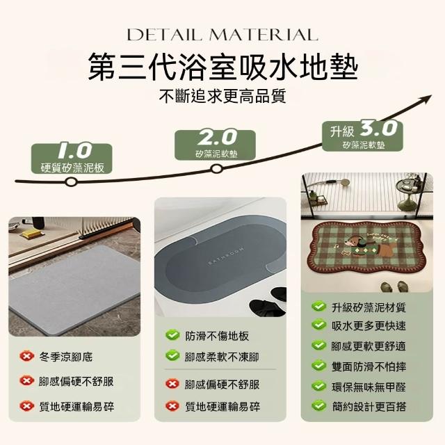 硅藻軟地墊 美式腳踏墊 珪藻土軟墊 吸水地墊 浴室地墊 腳踏墊 洗手間地墊 硅藻地墊(柔軟回彈/吸水速乾/仿人字橡膠底)