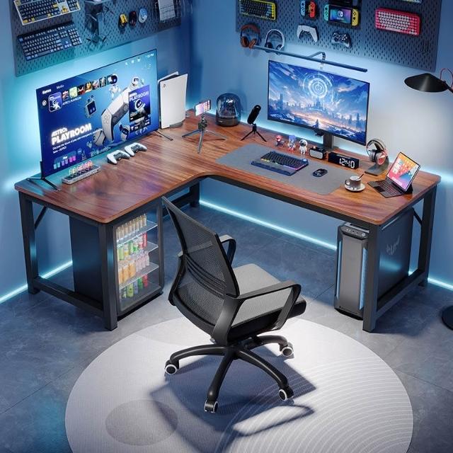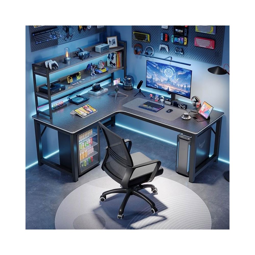 轉角電腦桌 多規格書架組合 電競雙人臺式 傢用拐角式書桌書架組閤臥室L型 辦公桌子 碳纖維電腦桌