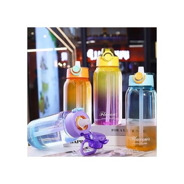 台灣當天發貨 玩味果味水瓶1L大容量水杯 吸管杯雙色漸變塑料水杯 男女學生杯 便攜水壺 玩味杯 趣味杯 兒童水壺