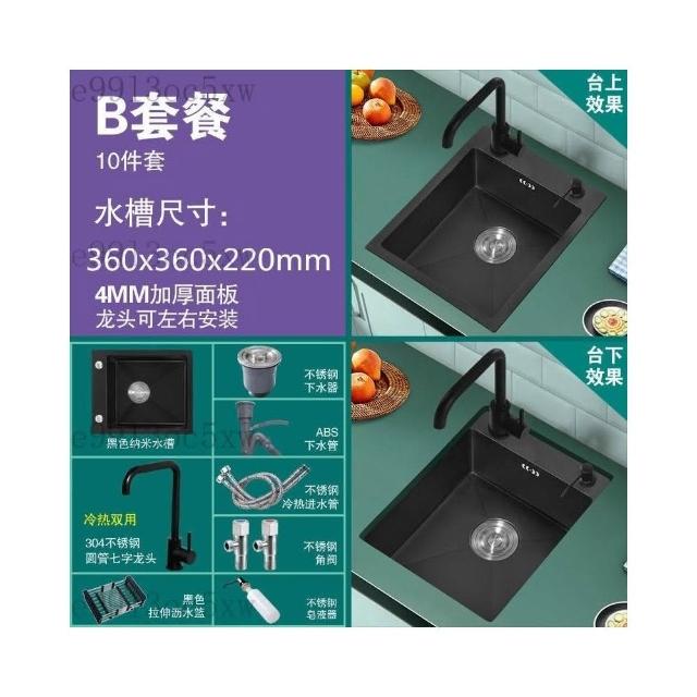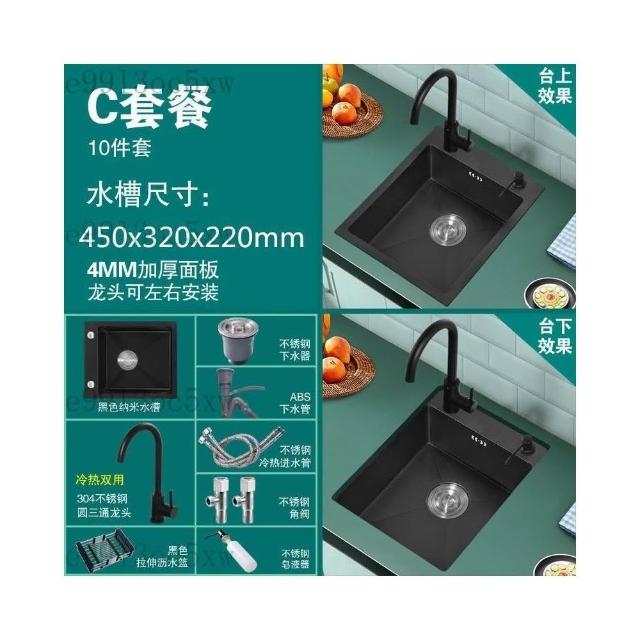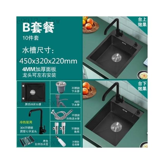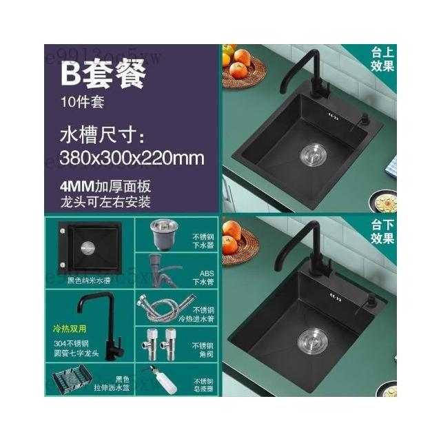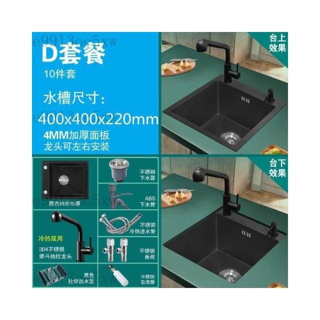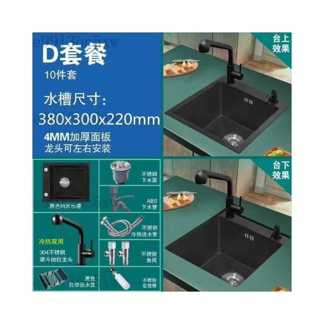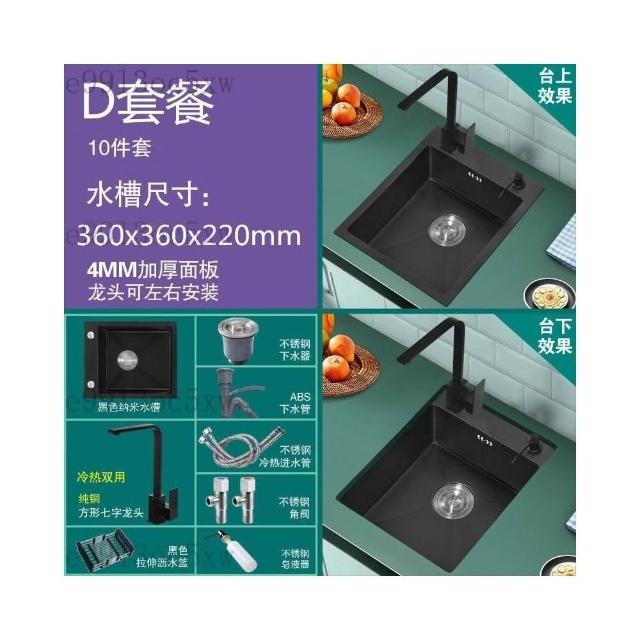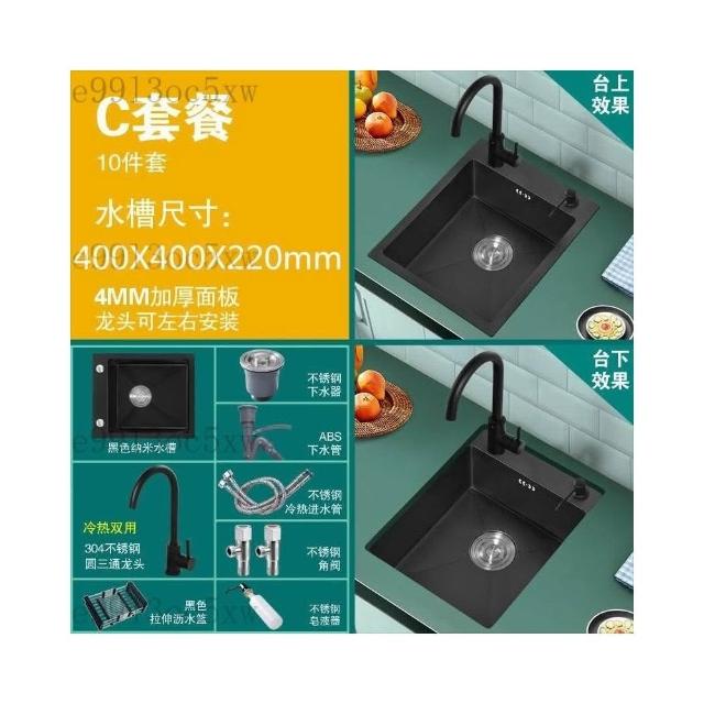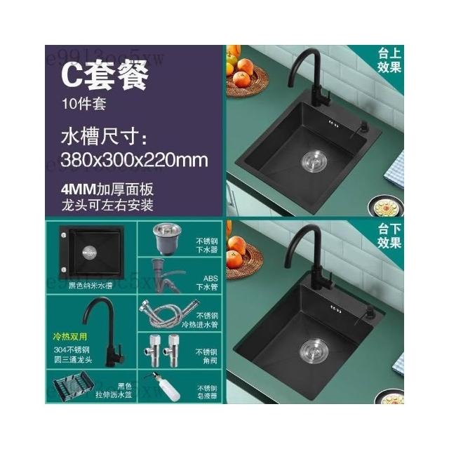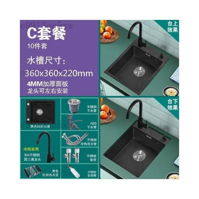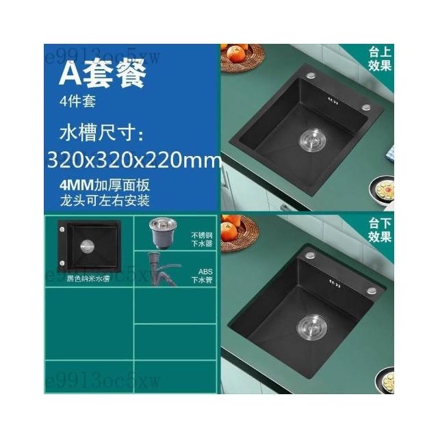 不銹鋼水槽 廚房水槽 單槽 洗手臺 洗菜盆 納米黑色不銹鋼手工水槽單槽 廚房迷你洗菜盆加厚小號吧臺洗