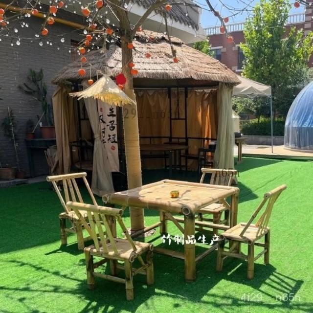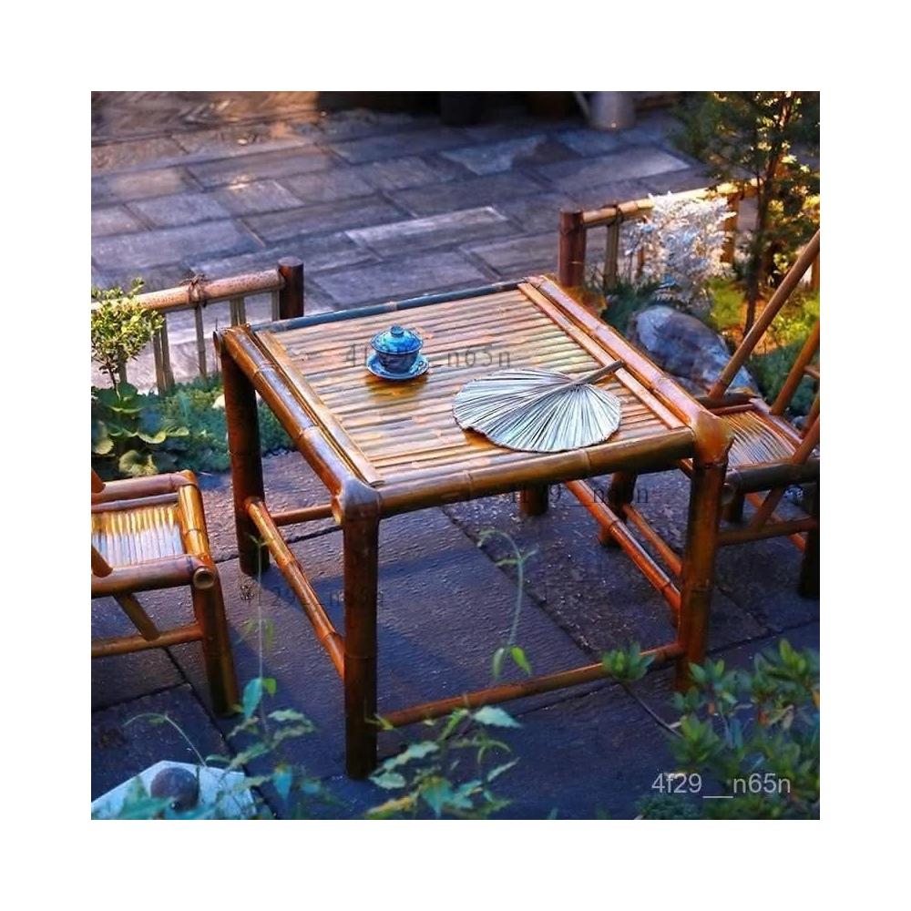 老式竹桌茶桌圍爐煮茶組閤野炊桌椅全套庭院茶幾竹子複古民宿茶館 免運