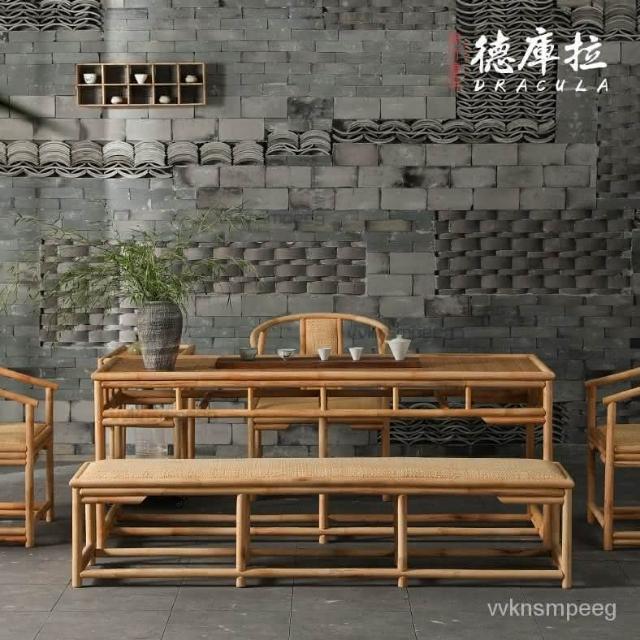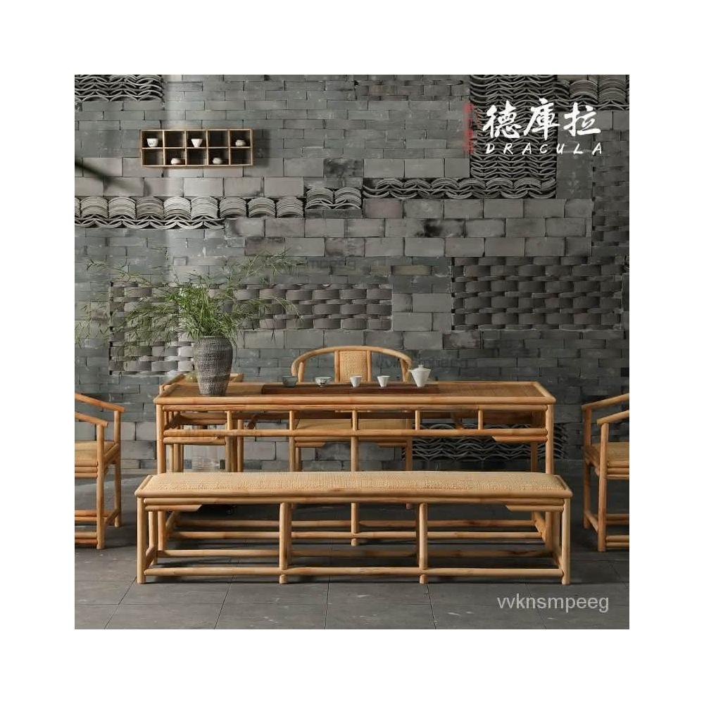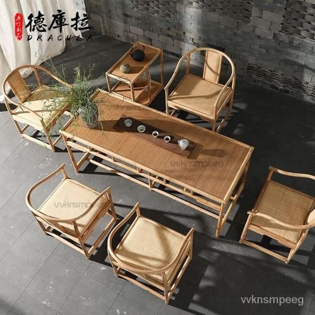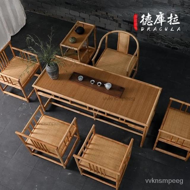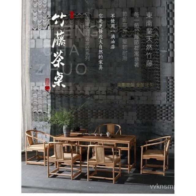 可開發票 竹藤茶桌椅組閤新中式禪意茶室茶幾辦公室桌子陽臺功夫茶茶臺傢具 免運