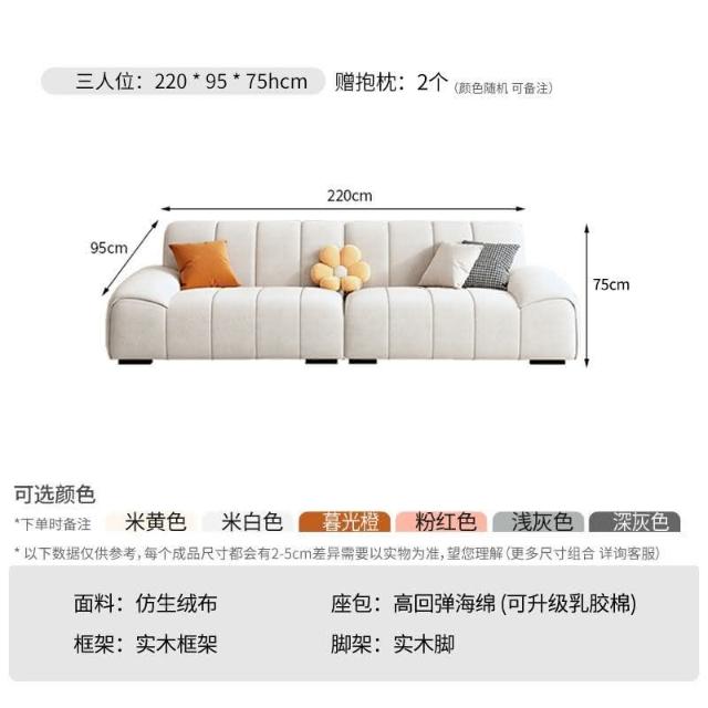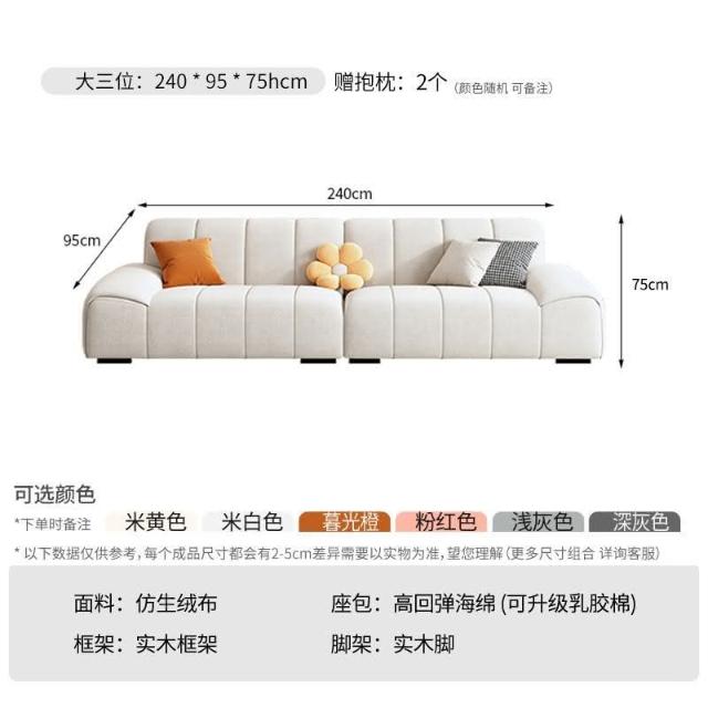 沙發 奶油風沙發 小戶型沙發 傢用客廳 現代簡約 貓抓佈 直排沙發 超軟 三人沙發 四人沙發