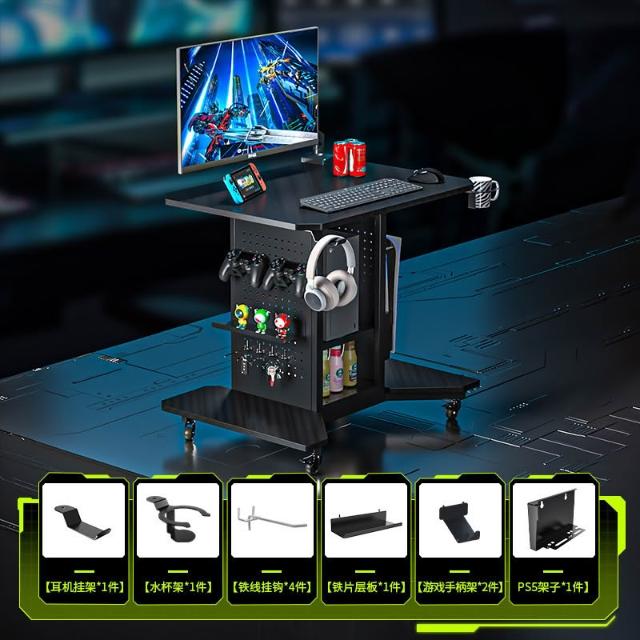 免運🌈可開發票 電競桌椅 洞洞板桌 書桌 卓貓80CM小尺寸旋轉可移動電腦桌PS5收納架床邊桌櫃一體小電競桌