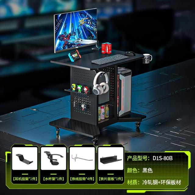 免運🌈可開發票 電競桌椅 洞洞板桌 書桌 卓貓80CM小尺寸旋轉可移動電腦桌PS5收納架床邊桌櫃一體小電競桌
